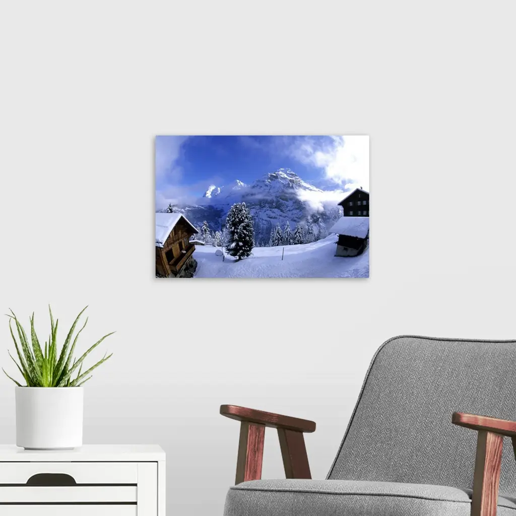 Life in Switzerland beautiful snow scene in Mt Jungfrau in Murren Switzerland