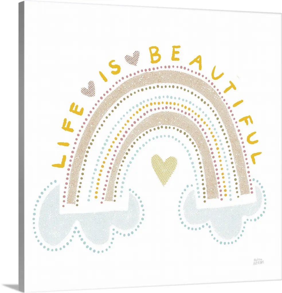 Life Is Beautiful Quote Patterned Rainbow Sky Cloud Text,1pc, Each 24 X 24