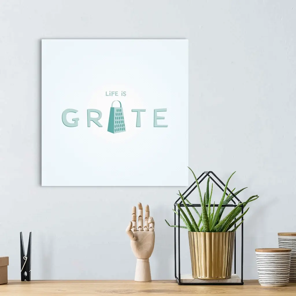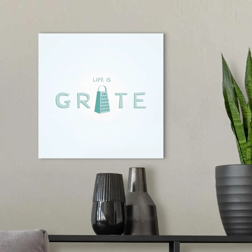 Minimalist kitchen art with a retro vibe, combining everyday phrases with kitchen tools and food.