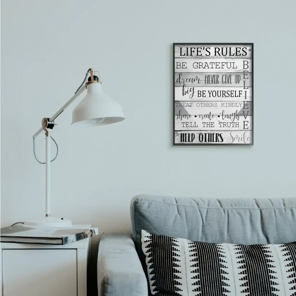 Life's Rules Phrases On Wood Grain Black White Word Design,1pc, Each 16 X 20