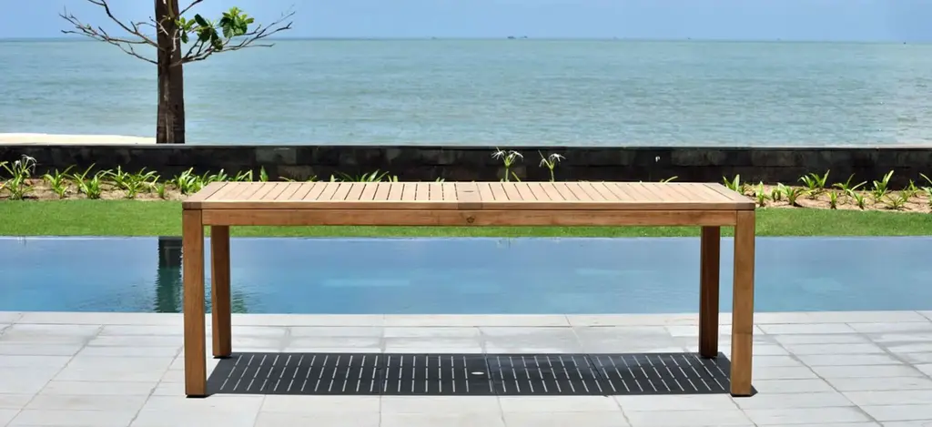 Lifestyle Garden Outdoor 7-pc. rectangular dining set made of high quality certified teak wood exclusively grown in Indonesia. Teak is a natural living material that is renowned for its rich golden-brown color, but also for its classic aging appearance after exposure to the elements of weather and time. It is also well known for its ability to withstand prolonged weathering and heavy impacts in the outdoor living environment. Main properties of teak include its sustainability, natural durability, classic finish, and rich earthy tones.