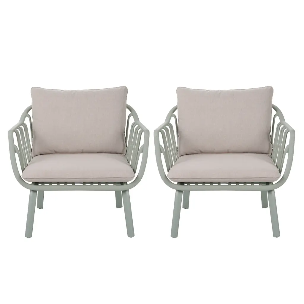 Lifework Outdoor Club Chair With Curved Frame And Back Cushion, Set Of 2 - Light Green