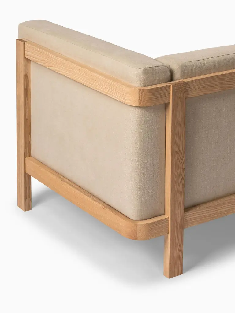 Inspired by the graceful mechanics of elevators, the LIFT sofa takes both its name and aesthetic cues from this influence. Created by the hands of Julien Renault, this masterpiece pays homage to refined design, expert craftsmanship, and unparalleled quality. Set apart from conventional sofas, the LIFT sofa boasts a distinct feature—a pristine wooden framework on its back that mirrors the contour of the cushions, unspoiled by the intrusion of bolts or screws.Available in a range of sizes from one seater to a spacious three seater, the LIFT sofa collection offers versatility in its choice of ash, oak, and walnut wood options. Complementing this, a diverse selection of fabric and leather upholstery colours can be chosen to tailor the piece to your taste.With its understated yet captivating aesthetic, the LIFT sofa effortlessly complements a multitude of environments. Its discreet charisma exudes an inviting charm that seamlessly merges comfort and sophistication.
