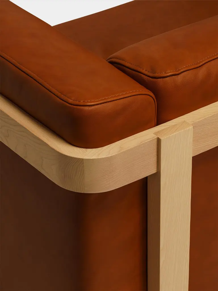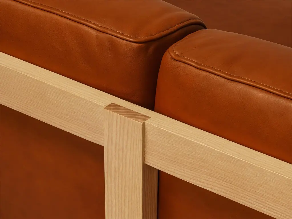 Lift Sofa - Minimalist 3-Seater Sofa In Ash And Leather Upholstered