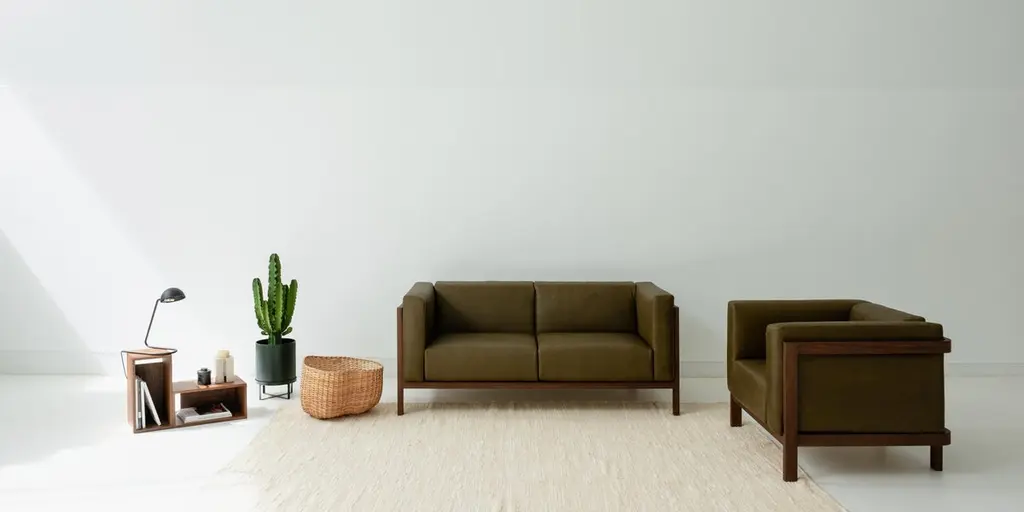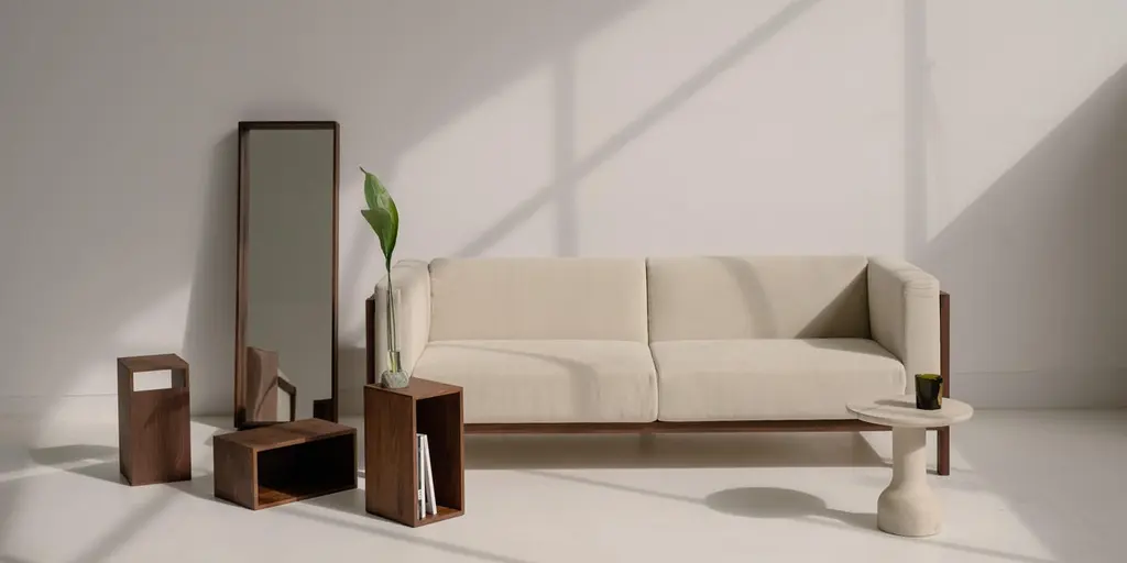 Lift Sofa - Minimalist 3-Seater Sofa In Walnut And Fabric Upholstered