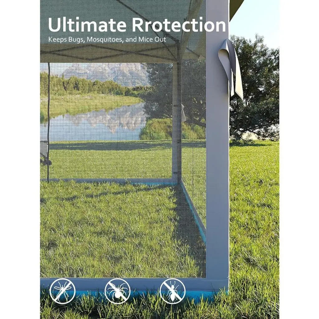 Stable Construction: Our - is engineered for strength with a high-quality,thickened steel frame and rust-resistant coating,ensuring longevity and stability.This Outdoor Canopy Tent with Mosquito Netting is built to last,making it a reliable choice for your backyard tent needs.Material: Enjoy silver plated PU lining with UPF 50+ UV protection in our Outdoor patio gazebo,keeping you safe from the sun's harmful rays.The waterproof and sun-proof material, along with high-quality mosquito nets, provide excellent protection while maintaining visibility and airflow.Spacious Space: Offering 169 square feet of shaded space,our - is perfect for social gatherings.The 13x13FT canopy comfortably accommodates 10 people, providing ample headroom and making it an ideal space for family and friends to relax underVersatile Mosquito Net Walls: This backyard tent comes with four zippered mosquito net walls that can be easily installed or removed.Ideal for various outdoor spaces, from patios to poolside parties it keeps bugs at bay while you enjoy the outdoorsEasy to Install :Our - is designed for easy installation, Simply unfold the frame, attach the canopy cover,secure the corners, and extend the legs.With just 1-2 people,you can quickly build your outdoor tent, making it a convenient option for any outdoor event.