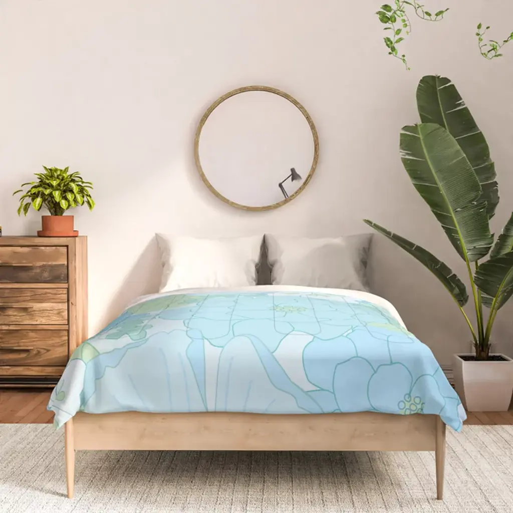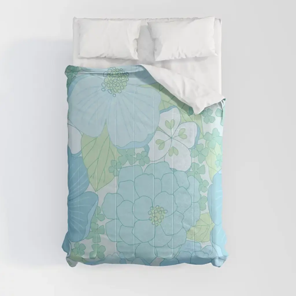 Light Blue Pastel Vintage Floral Pattern Comforter