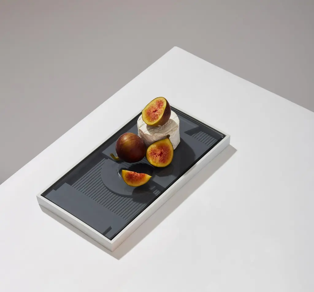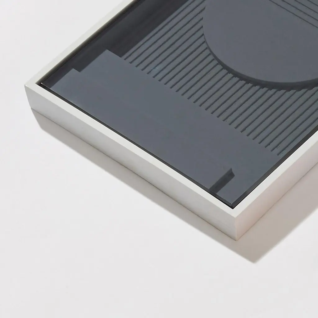 Light grey rectangle under the surface by Theodora AlfredsdottirUniqueMaterials: Jesmonite, Glass topDimensions: 140 x 260 x 30mmTheodora Alfredsdottir is a product design studio based in London. Theodora is an Icelandic product designer. She holds a bachelor’s degree in product design from the Iceland Academy of the Arts (2012) and a master’s degree in Design Products from the Royal College of Art in London (2015).Storytelling through objects; Theodora’s work revolves around the narrative an object can inhabit and exploring ways of objectifying that narrative. She's interested in the way an object can act as documentation of its manufacturing process; a record of what went on between the machine, tools, craftsman and material as well as it can communicate its origin and former life. In short, the object creates its own factual narrative. That often leads to the discovery of unexpected qualities as well as it gives the user a subtle opportunity to reconsider our material world and explore value in a different way.