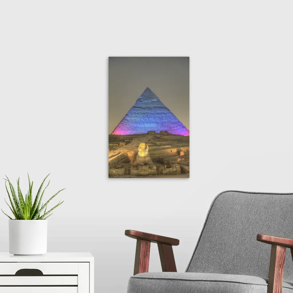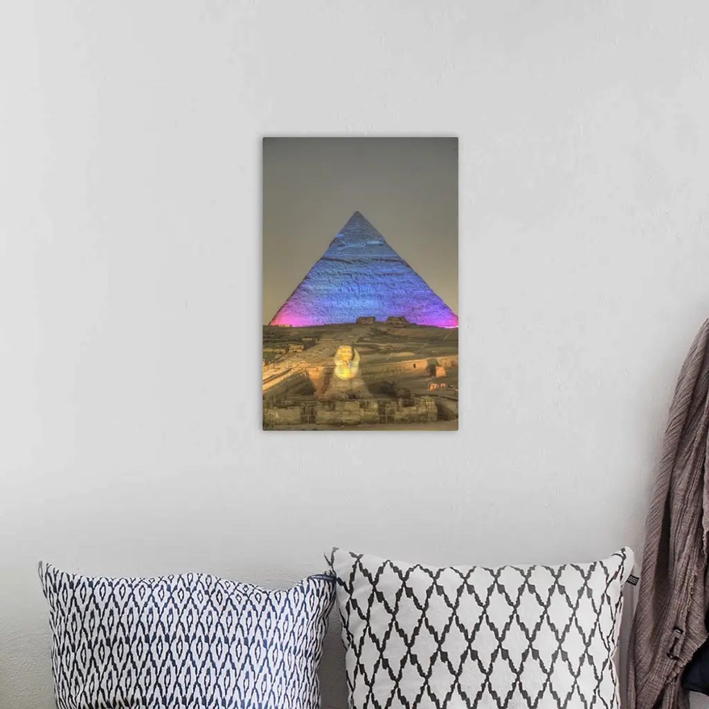 Light Show, Sphinx, Khafre Pyramid, Great Pyramids Of Giza, Giza, Egypt, Africa