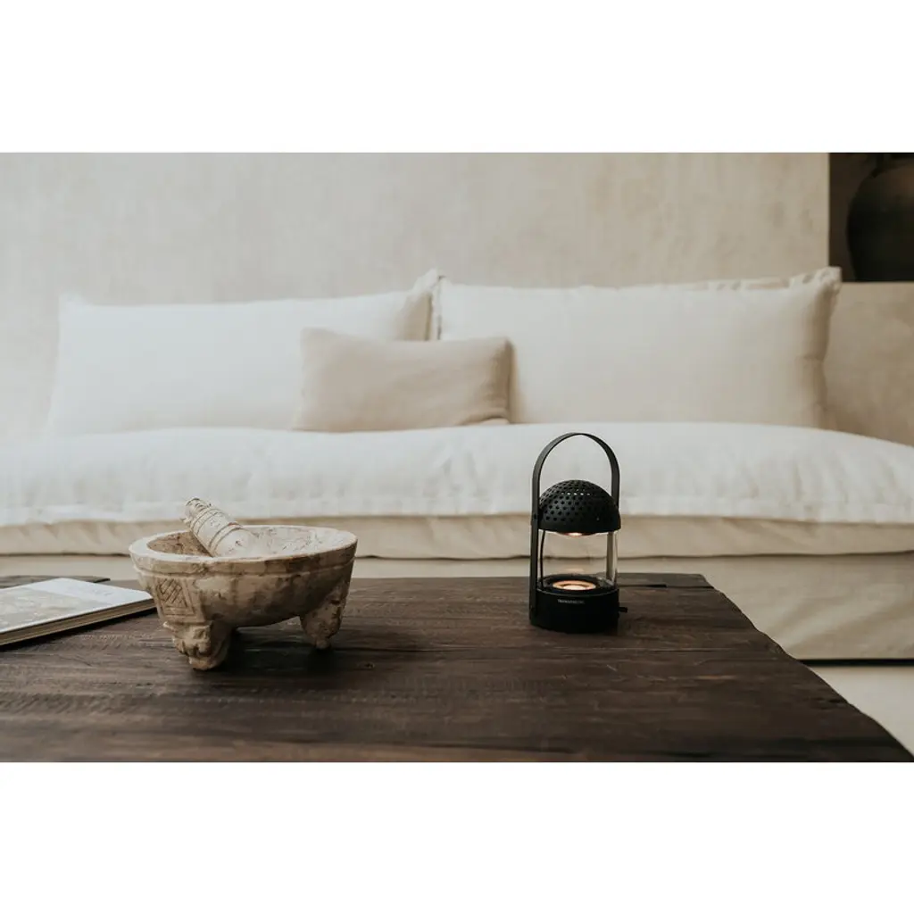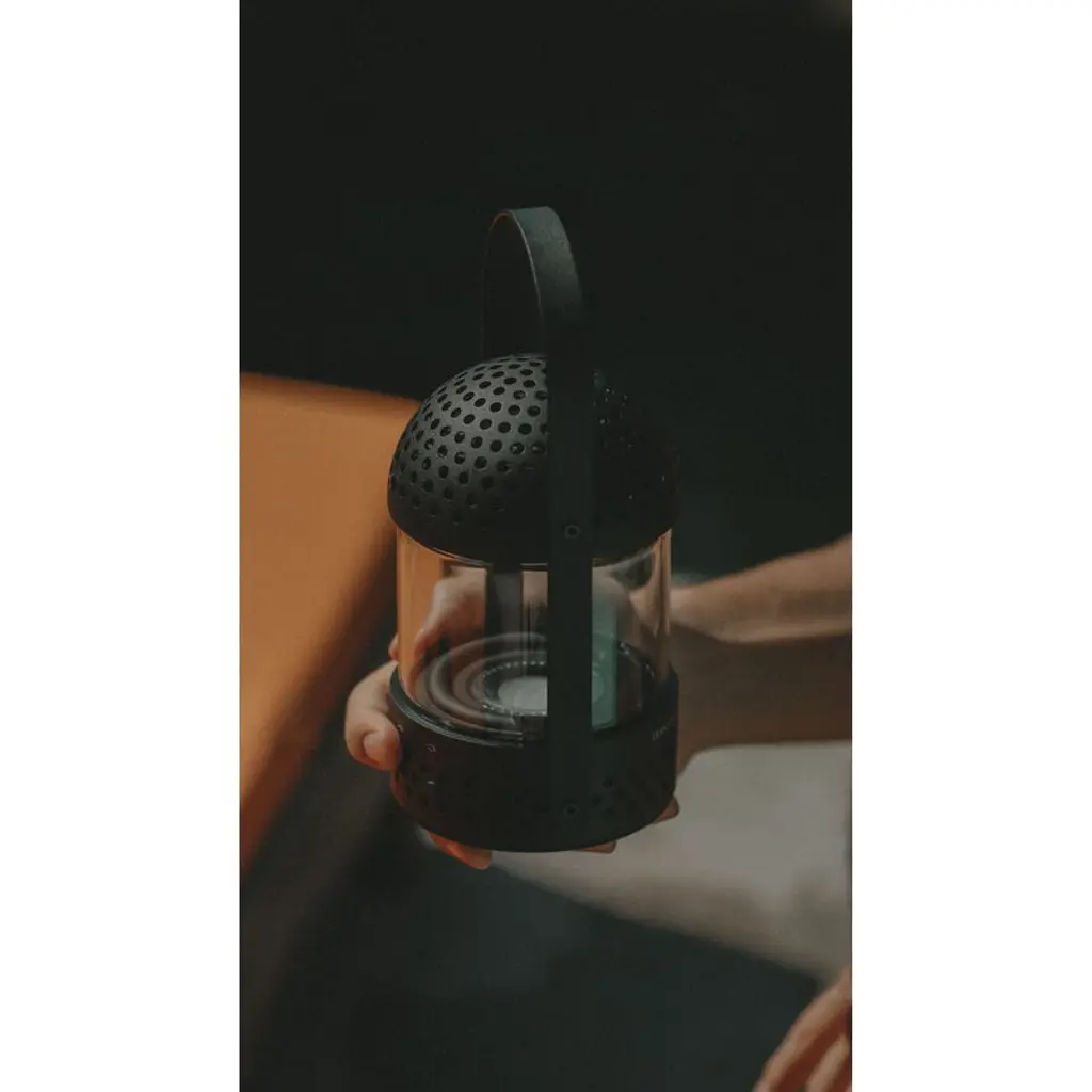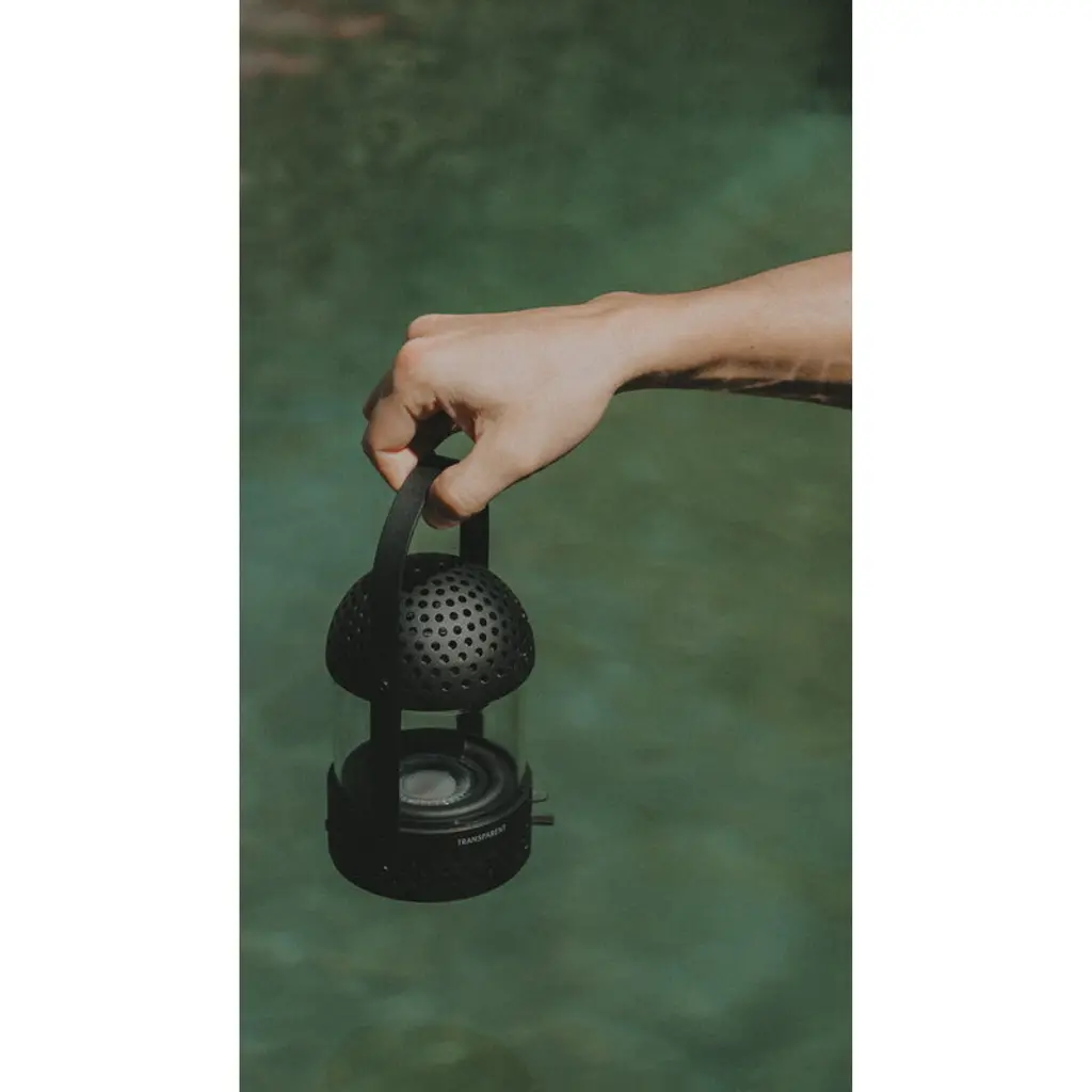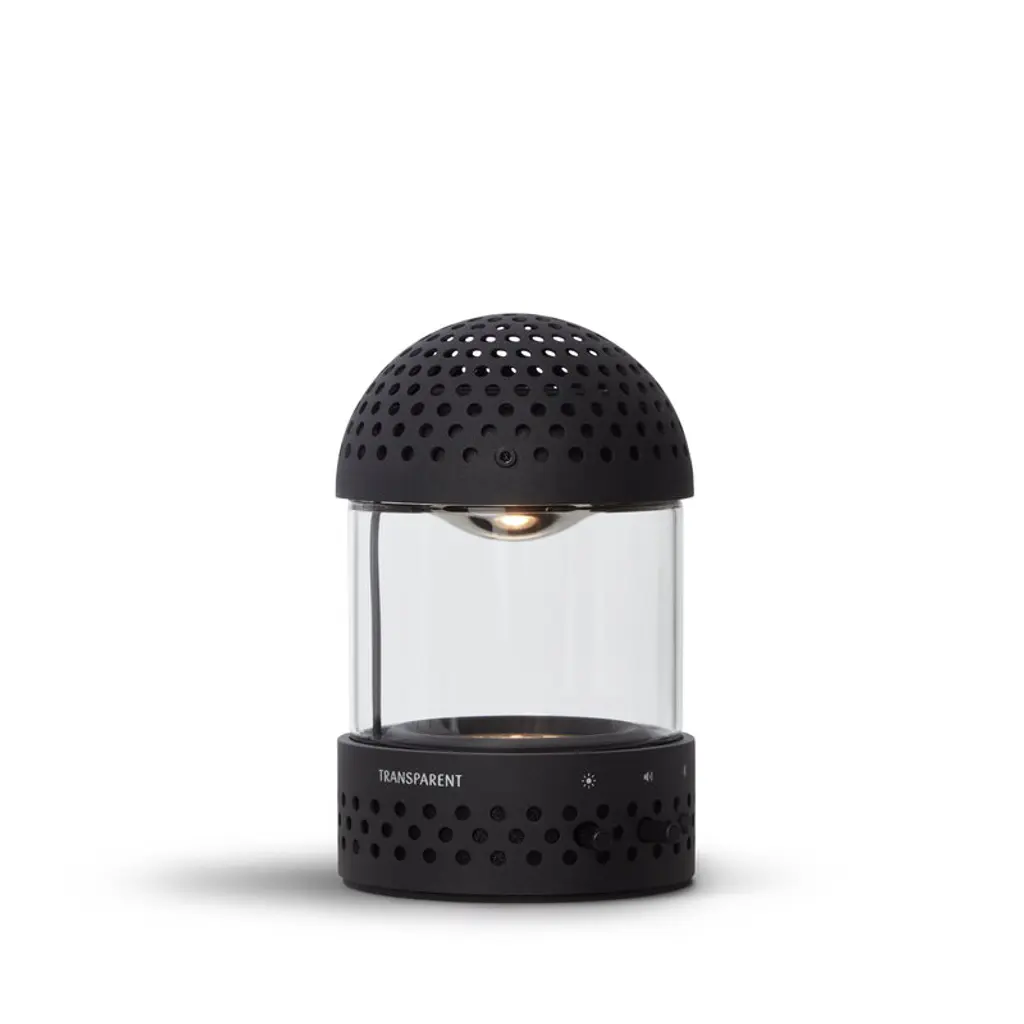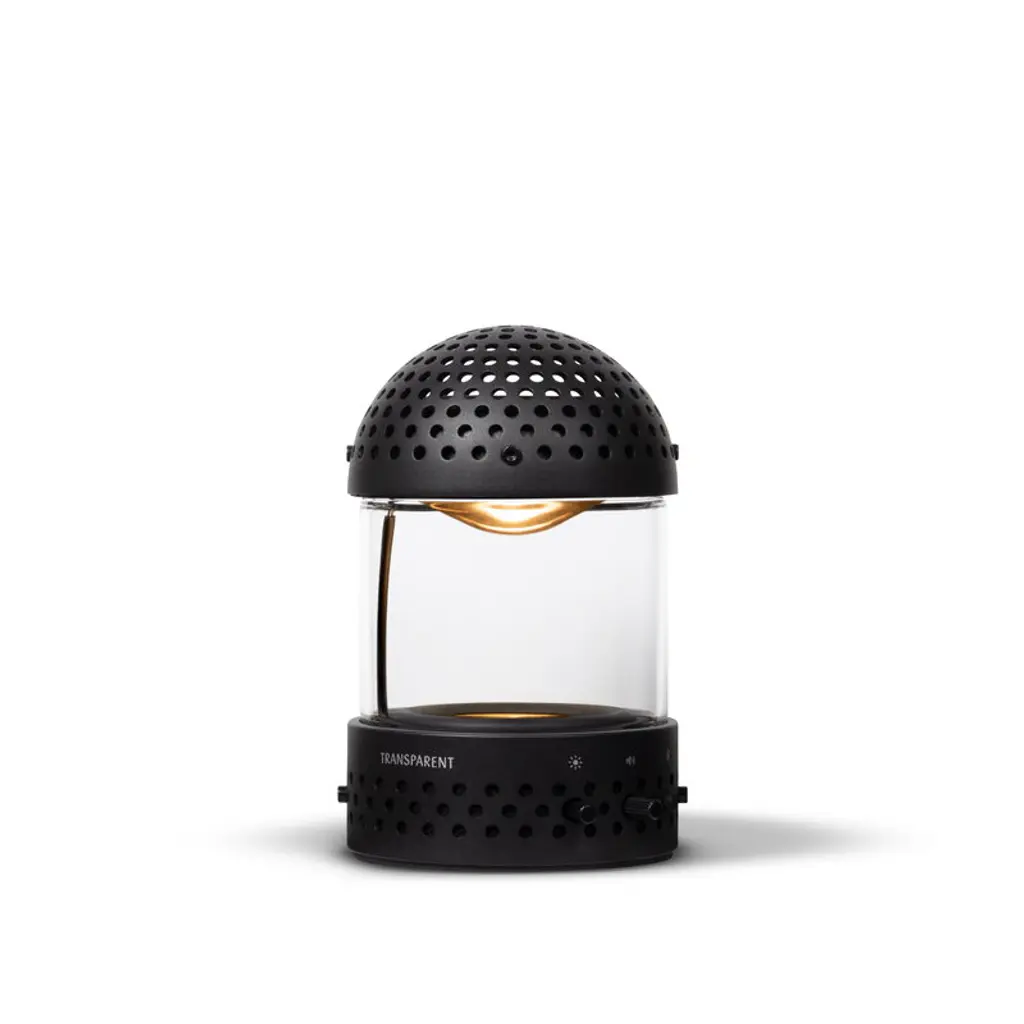 Transparent's Light Speaker follows you wherever you go! The lightweight, compact design, IPX2 rating and 10-hour battery life make the portable speaker the perfect companion for summer picnics, outdoor adventures or just moving from room to room. When the battery runs low, you can easily recharge the speaker with the USB-C cable included. Blending modern tech with timeless design, the Light Speaker takes inspiration from traditional glass lanterns and flickering candles. But this is no ordinary lantern – built-in light elements glow and pulse in sync with the rhythm of your music, creating a multi-sensory experience that pleases both the eyes and ears. Crafted with sustainability in mind, the Light Speaker is made from durable aluminum and borosilicate glass. The modular construction allows for easy disassembly, so individual components can be repaired or replaced if needed. This means you can fix the same speaker instead of buying a brand-new one — a win for both your wallet and the environment!