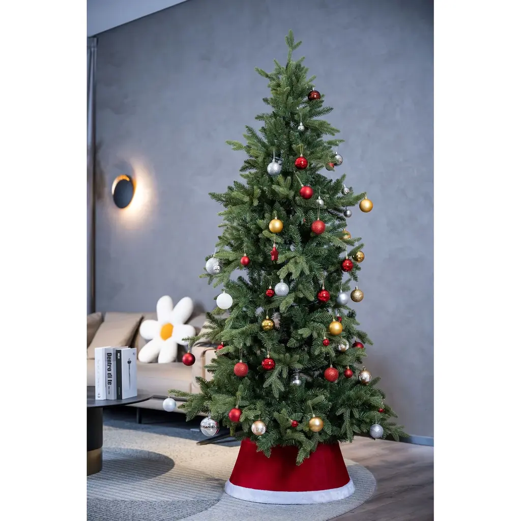 This sturdy tree stand is the perfect choice for your artificial Christmas tree. Real wood lends a rustic touch. The tip proof design offers piece of mind. Perfect for a country cottage setting. Product Features: Light wood stand for artificial trees 3 adjusting screw bolts Fits pole diameter 1.25" Wide base helps prevent tipping For use with trees up to 7.75ft Dimensions: 6"H x 21W x 21"D Material(s): wood/metal