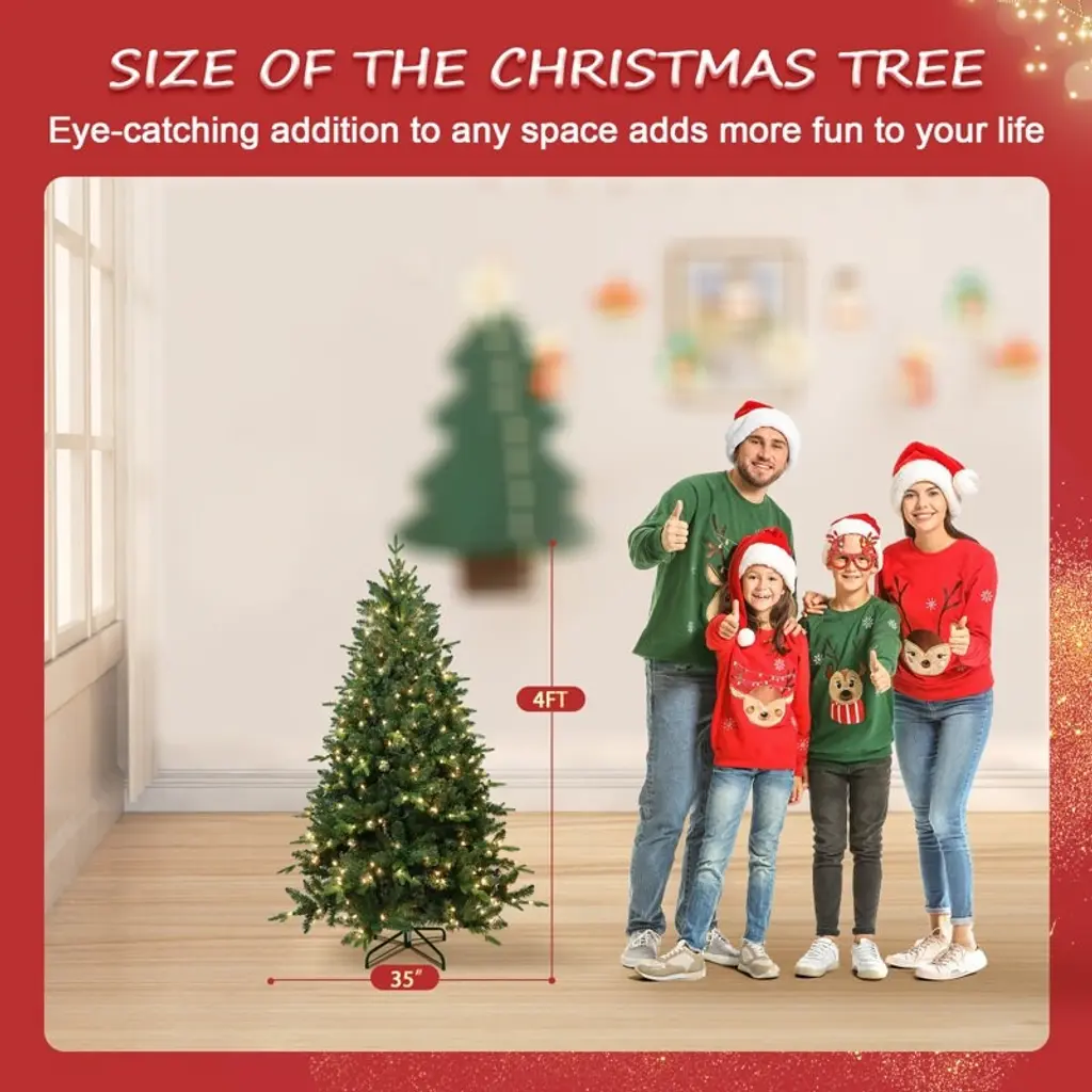 Lighted Artificial Christmas Tree,hinged Ul Tungsten Lights Christmas Tree- Stand Included - 4 Foot
