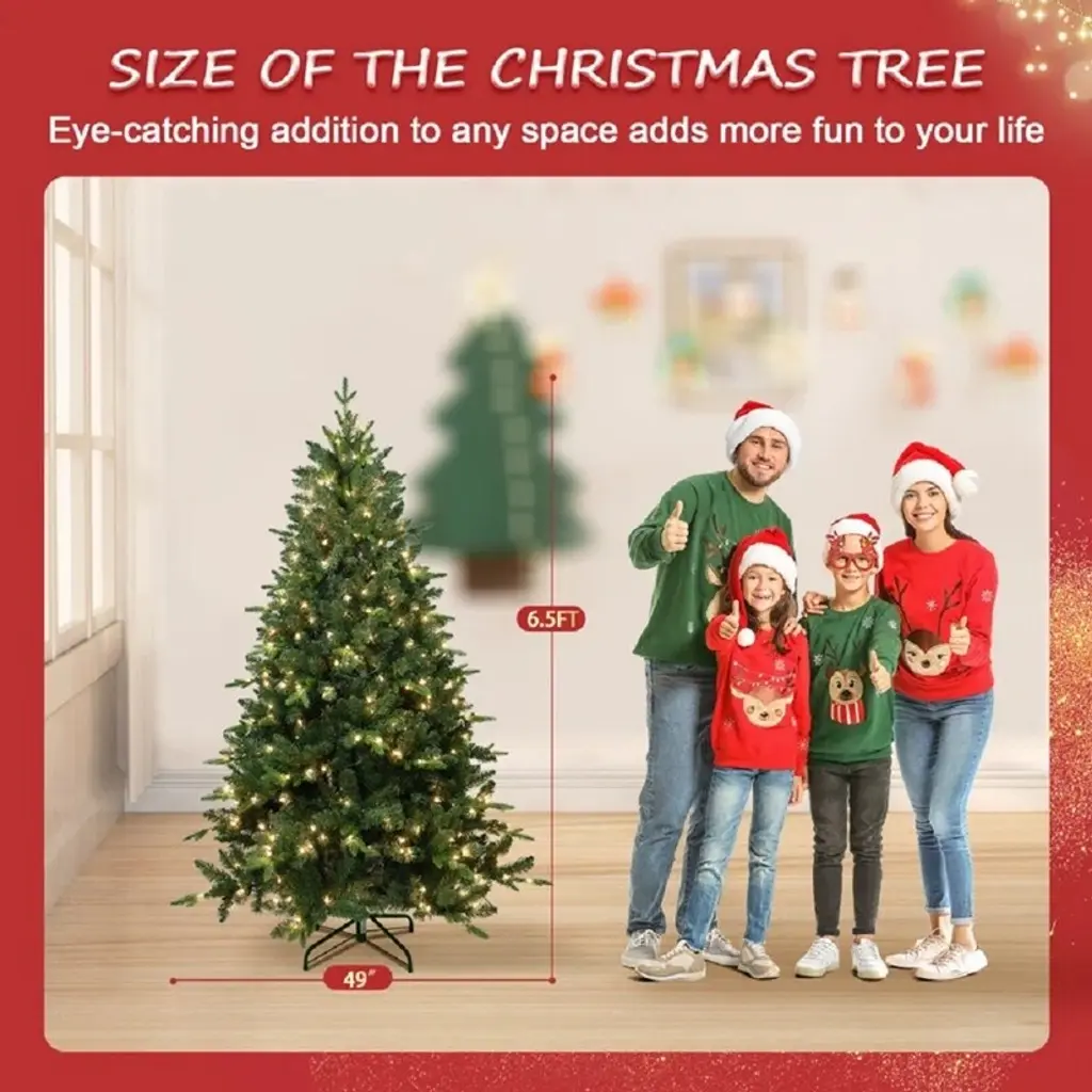 Bring a festive spirit to your home this holiday season with this classic Christmas tree. A nice Christmas tree is perfect for the holidays. Thousands of branches provide plenty of room to hang Christmas decorations and ornaments. The classic Christmas elements make it a great decoration for Christmas and the holiday season. Enjoy your decorating time and the joy of finishing with our artificial Christmas tree to add ambiance to your life and fill your home with the holiday spirit.Features:CONVENIENT HINGED DESIGN: Our hinged artificial Christmas tree is the ideal Christmas tree to bring out the holiday spirit. This artificial Christmas tree gives a rustic, realistic feel and look for those who are looking for a distinctive Christmas tree. Includes metal stand.REALISTIC FULL: Our 4/5/6/6.5/7/7.5 foot Christmas tree has 150/300/350/400/450/500 warm colored lights that are unmatched by any other Christmas tree, bring home the most realistic, full Christmas tree for the holidays.WARM LIGHTS: This tree comes pre-installed with UL tungsten lights to make tree installation a breeze. These lights give off a warm glow that highlights your decorations and holiday gifts, making your Christmas tree look extra special.REUSABLE: Although the holiday season is only a few short months away, this Christmas tree will last much longer. Made from high quality new polyethylene (PE), polyvinyl chloride (PVC) and sturdy metal supports, you can rest assured that your Christmas tree will be stored for a long time without any problems. These materials are also flame retardant and non-allergenic.EASY TO ASSEMBLE: Our Christmas trees feature hinged branches that are easy to assemble and disassemble. The branches easily drape into place for fluffing and folding for storage. You can adjust the branches for a more elegant look.