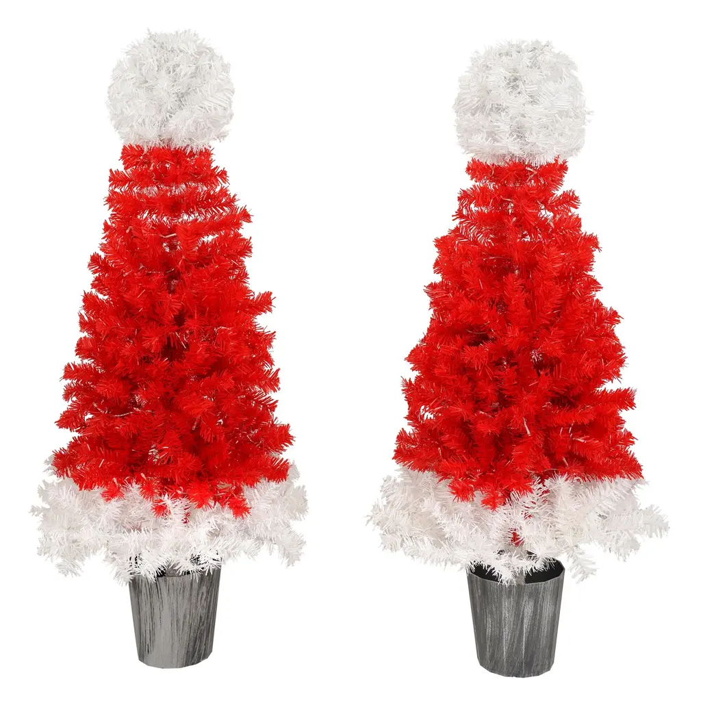 Lighted Santa Hat Style Christmas Tree Set, 4Ft Artificial Tree With Warm White Lights - 4 Foot