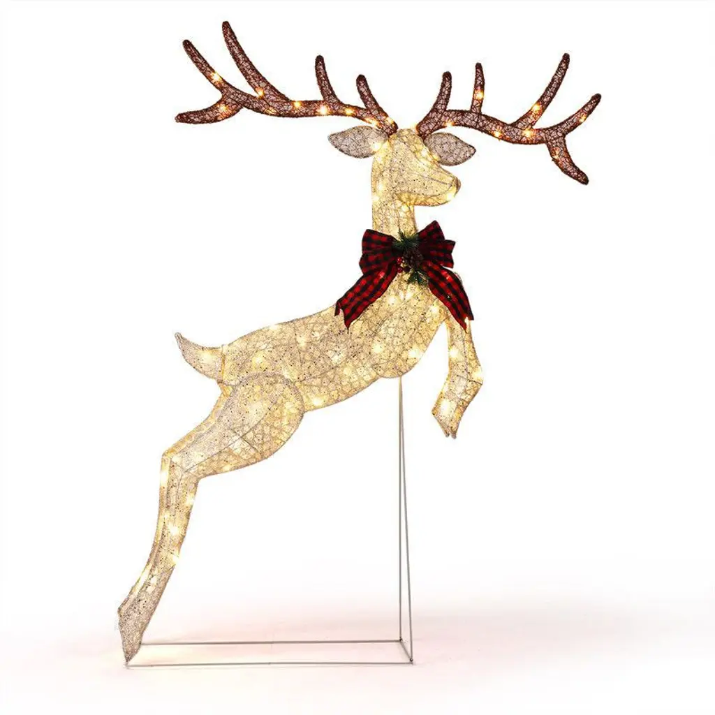 Lighted Sparkling Sisal White Reindeer Christmas Yard Art Decoration, 46"