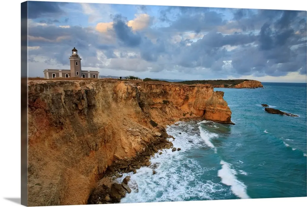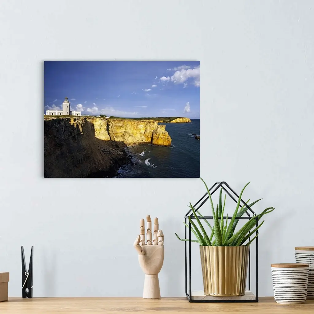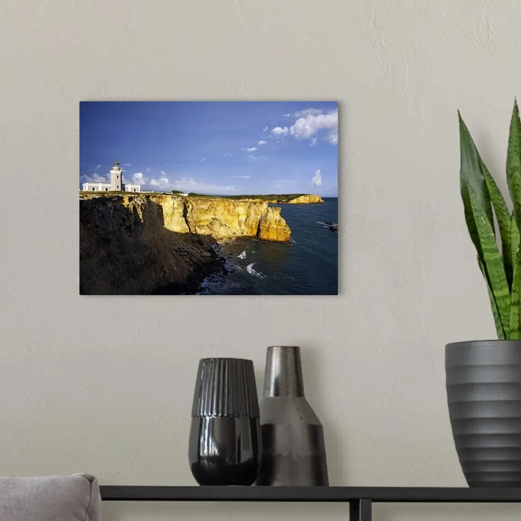 Lighthouse on a cliff, Cabo Rojo Lighthouse, Cabo Rojo, Puerto Rico wall art for home and office decor. Discover canvas art prints, photos, mural, big canvas art and framed wall art in GreatBigCanvas.com's varied collections.