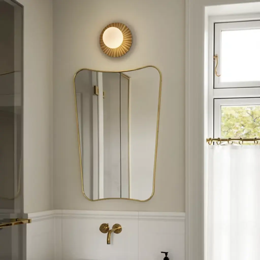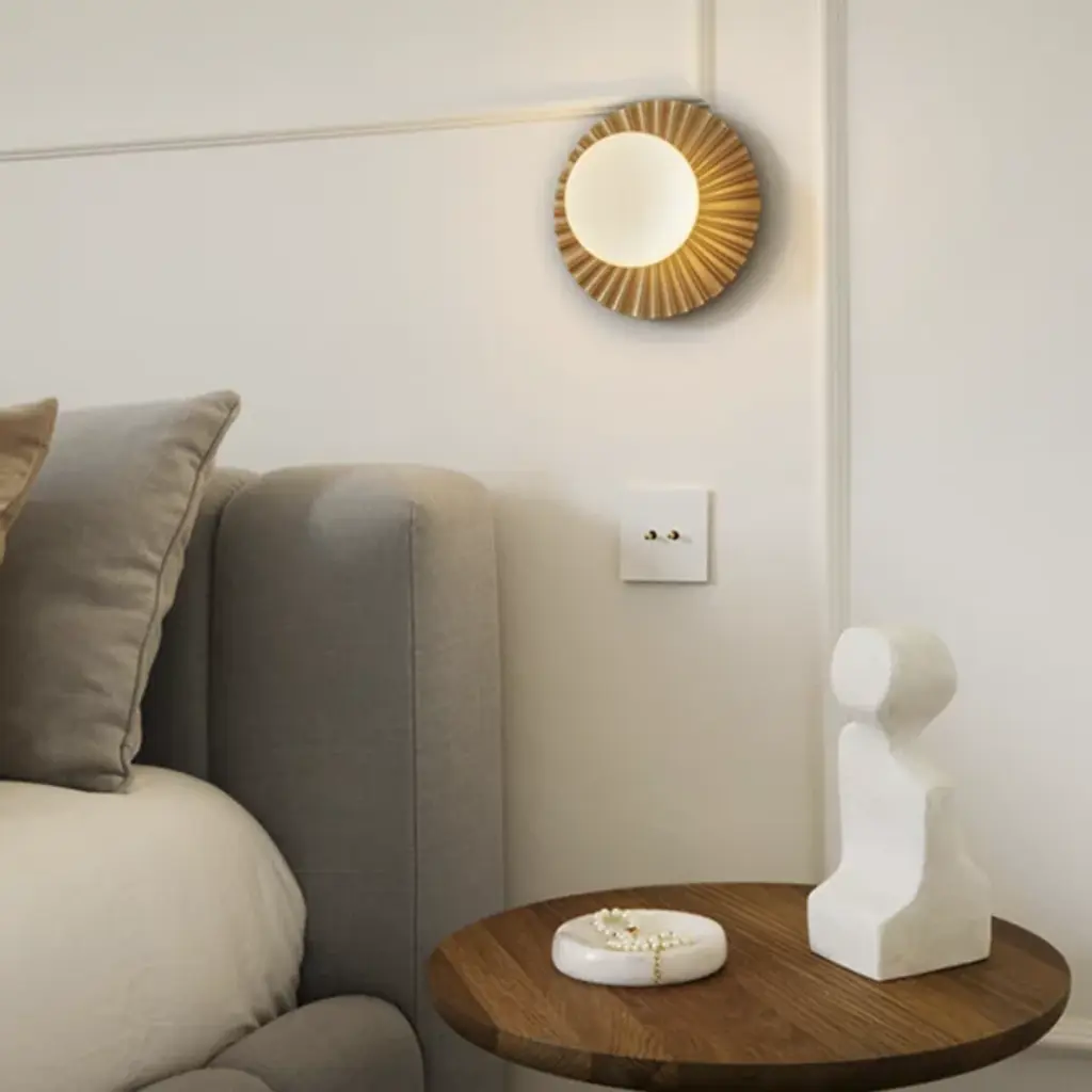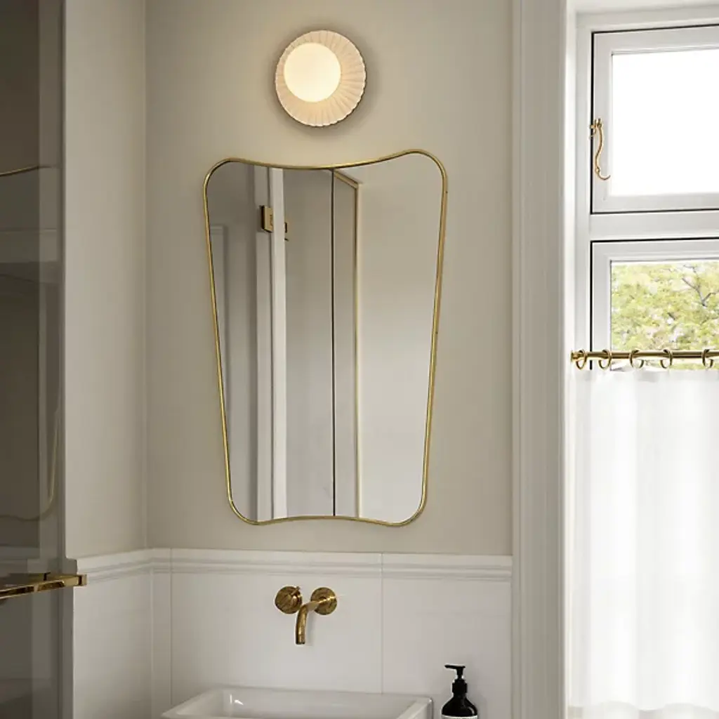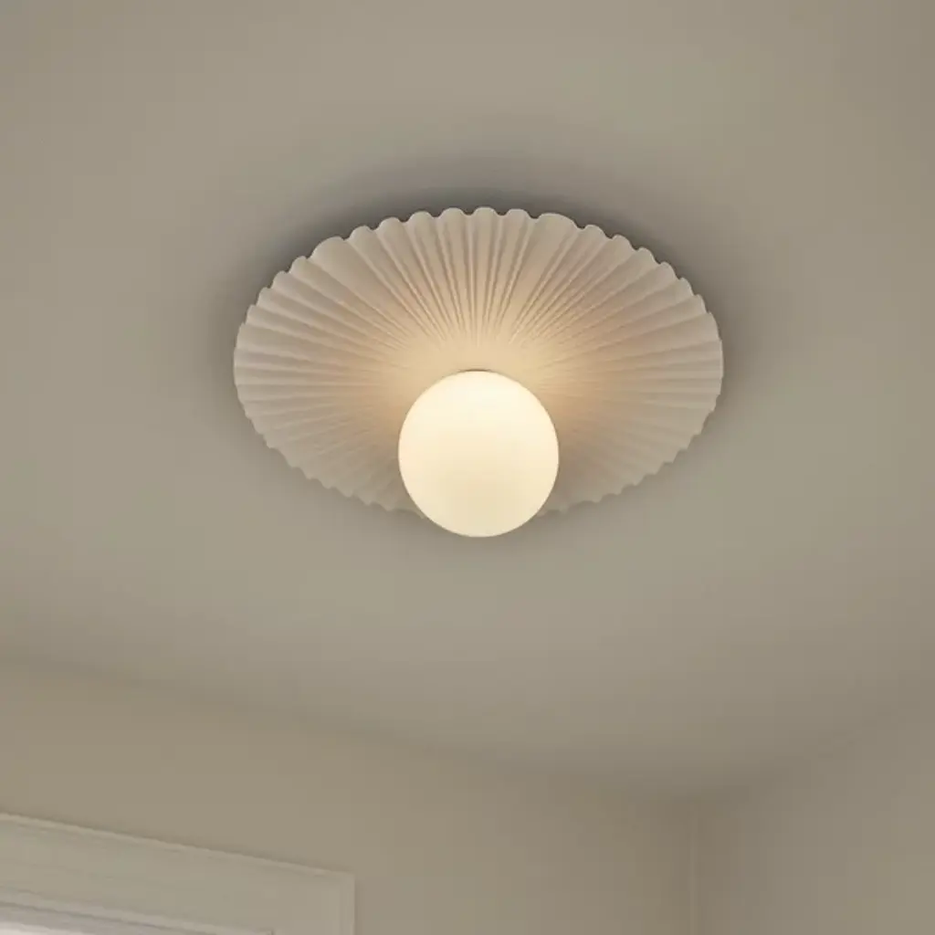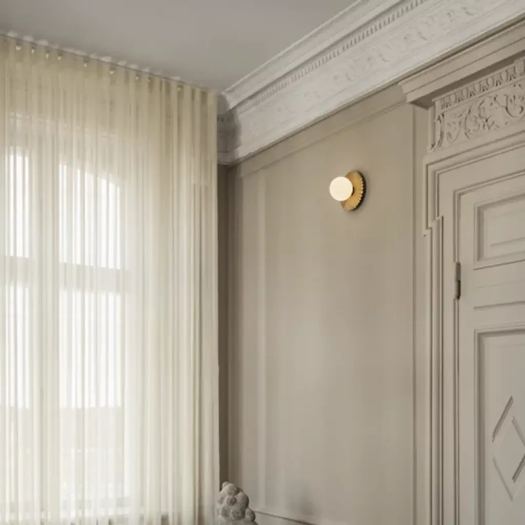 The Liila Muuse Wall / Flushmount from Nuura brings a playful, artistic touch to the Liila series, enhancing its signature floating aesthetic. This wall and ceiling lamp features a large, textured back plate in golden metal paired with a smaller opal-white glass globe. The contrast between the wavy texture and the soft, organic form adds depth and visual intrigue. Perfect as a semi-flush mount in entryways or foyers, this fixture adds a charming and expressive statement to any space.
