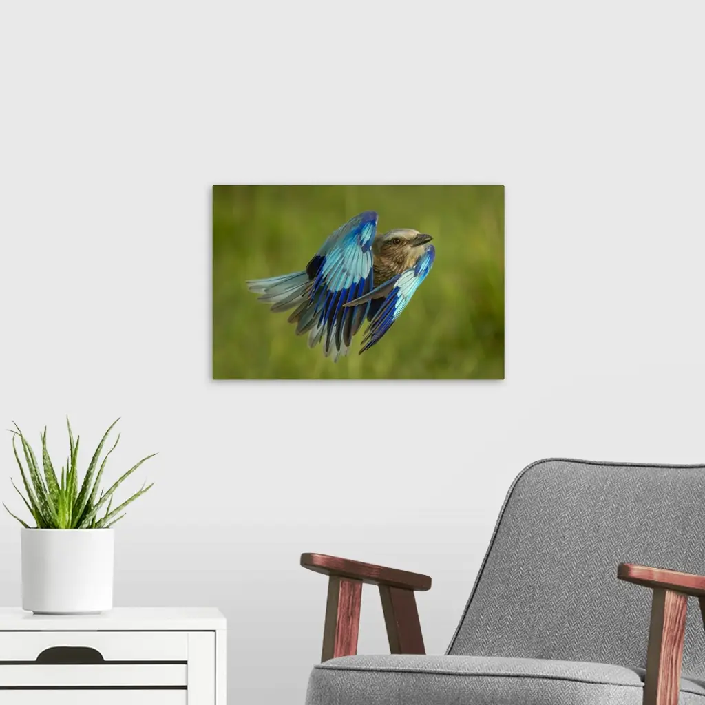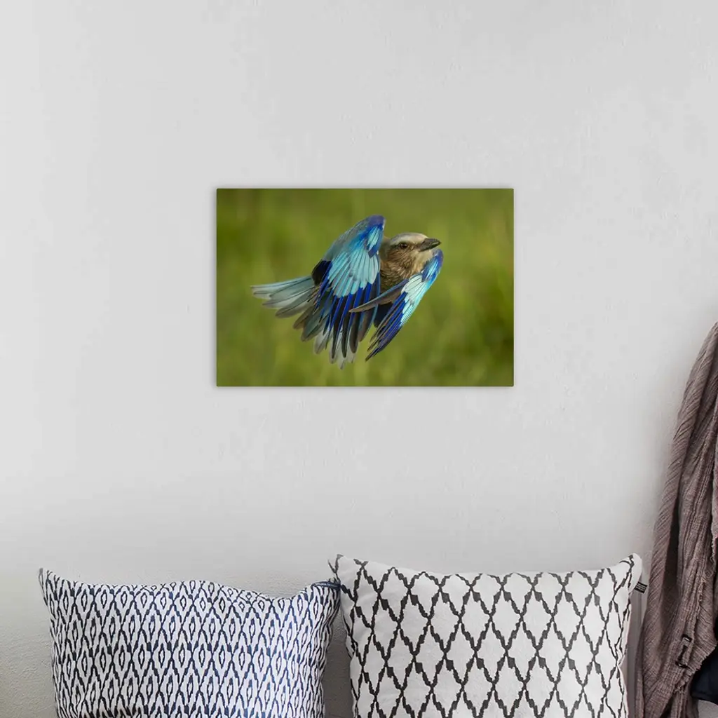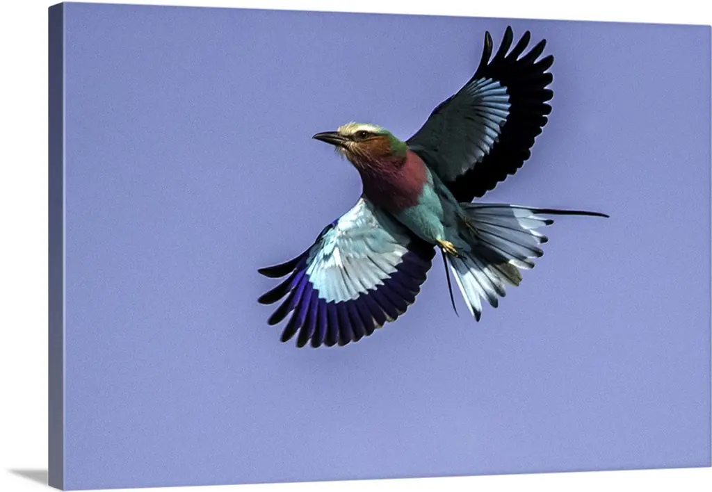 Lilac-Breasted Roller Flies With Wings Folded Up In Maasai Mara National Reserve, Kenya