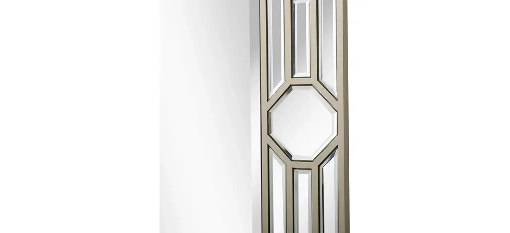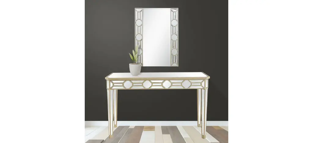 The Lilian Mirror is perfect for clients who enjoy modern style with a kick. The octagonal mirrors along the front take this console to new heights. Bring the Lilian Mirror home today and add amped-up modern flair to your space today.
