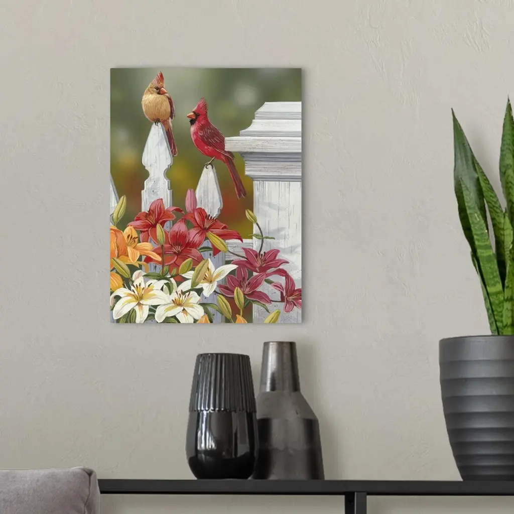Lilies And Cardinals wall art for home and office decor. Discover canvas art prints, photos, mural, big canvas art and framed wall art in GreatBigCanvas.com's varied collections.