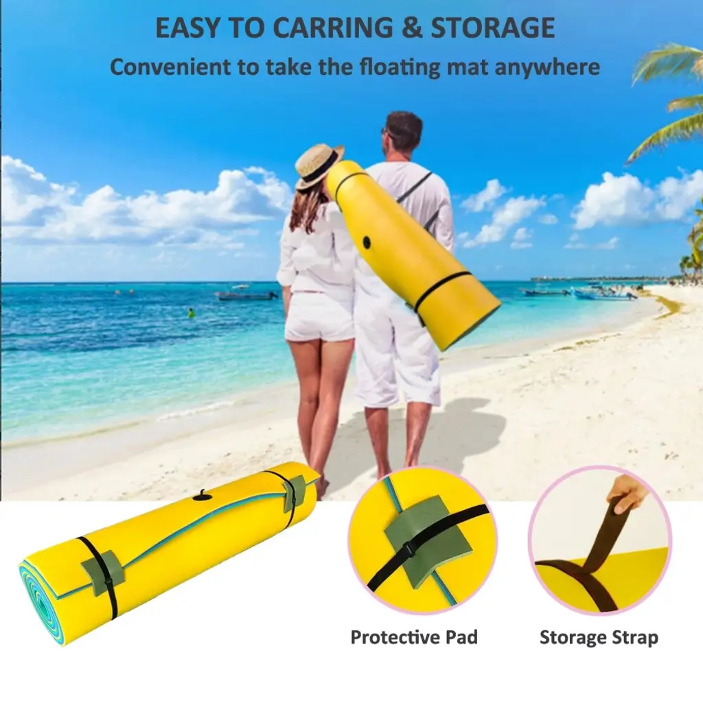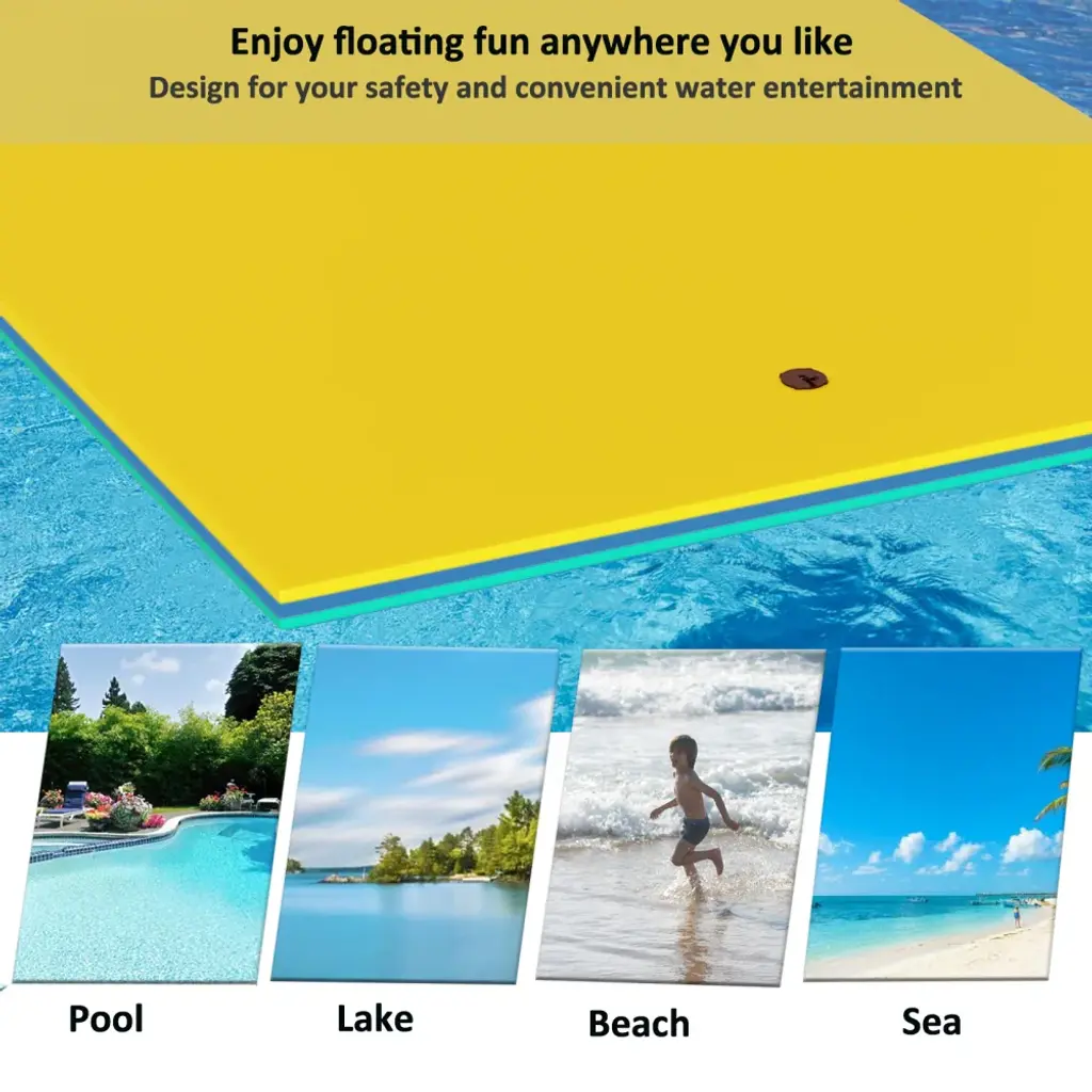 It's time to sunbathe in the water with your friends! This water mat is perfect for entertaining and relaxing with family and friends in water parks, pools, lakes, rivers and the sea. Available in three different sizes: 15ft supports up to 1100 lbs and can accommodate 4-6 adults. 12ft maximum support weight is 880 lbs, can accommodate 3-5 adults. 9ft maximum support weight is 800 lbs, can accommodate 2-3 adults. Unfold this water mat in your favorite pool, lake or ocean to create your own floating island for everyone around you to enjoy. Features: