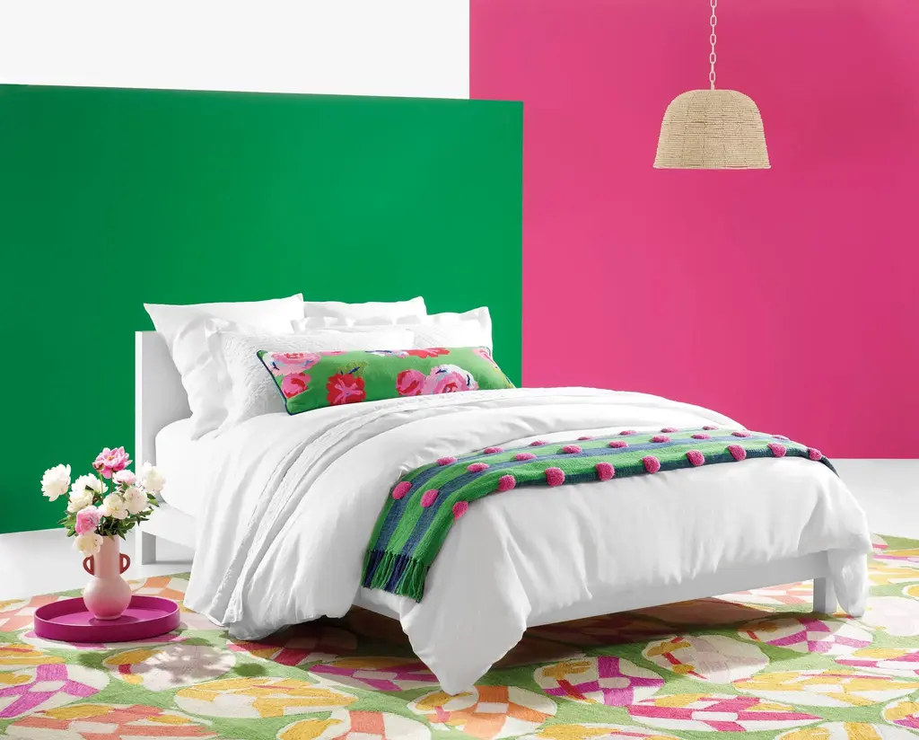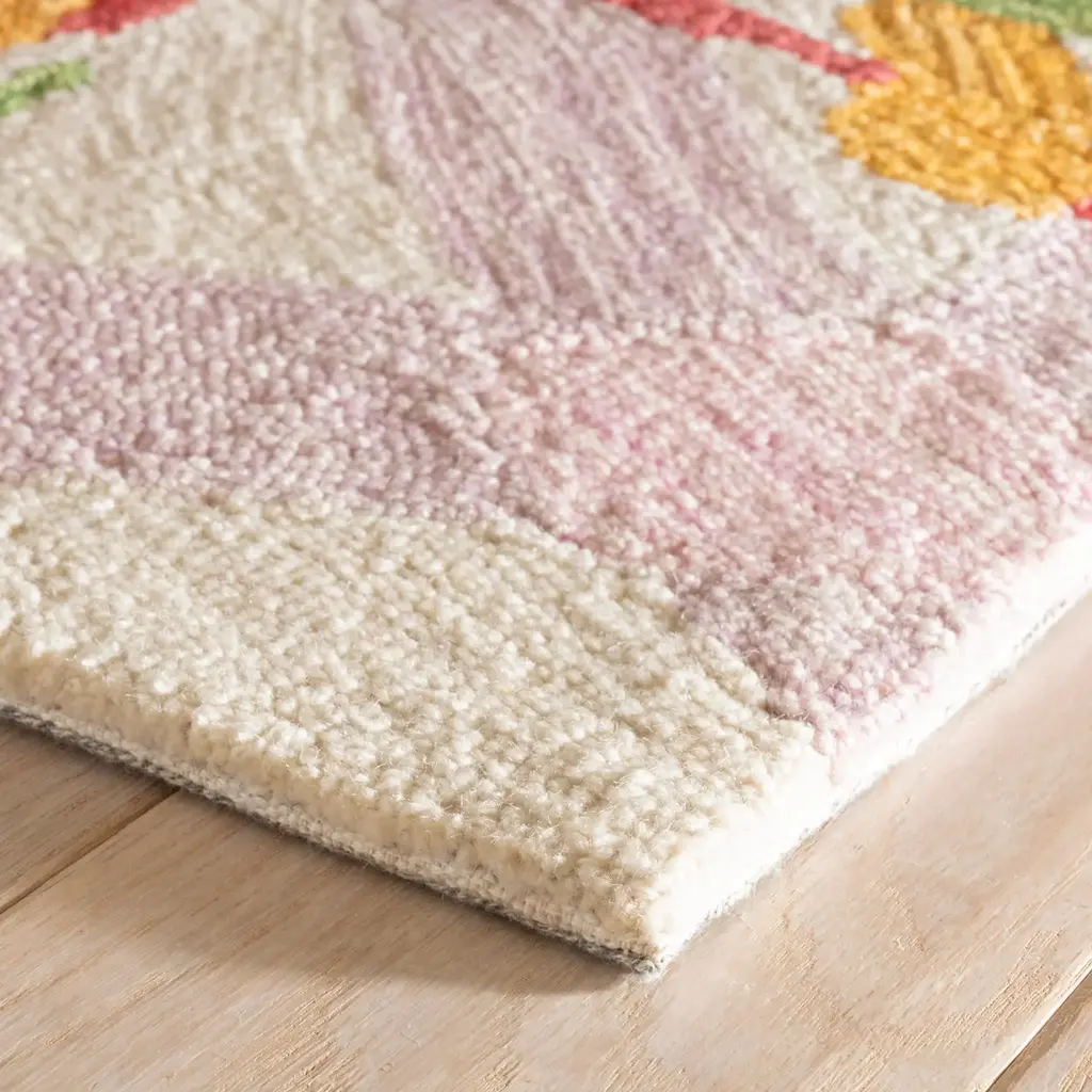 Kit Kemp's signature aesthetic and distinctive sense of color shines through in each iteration of this kinetic, retro inspired design. Evoking the shifting patterns and reflective surface of a lily covered water feature, each rug tells the story of refracted light through the seasons. Artfully rendered in micro hooked wool, for distinctive definition of form and color, as well as long lasting beauty and durability. One of the modern creations from the design collaboration between Annie and Kit Kemp, co-owner and Creative Director for Firmdale Hotels, united by their passion for colorful and carefree design, redefining contemporary Arts and Crafts for everyday life.