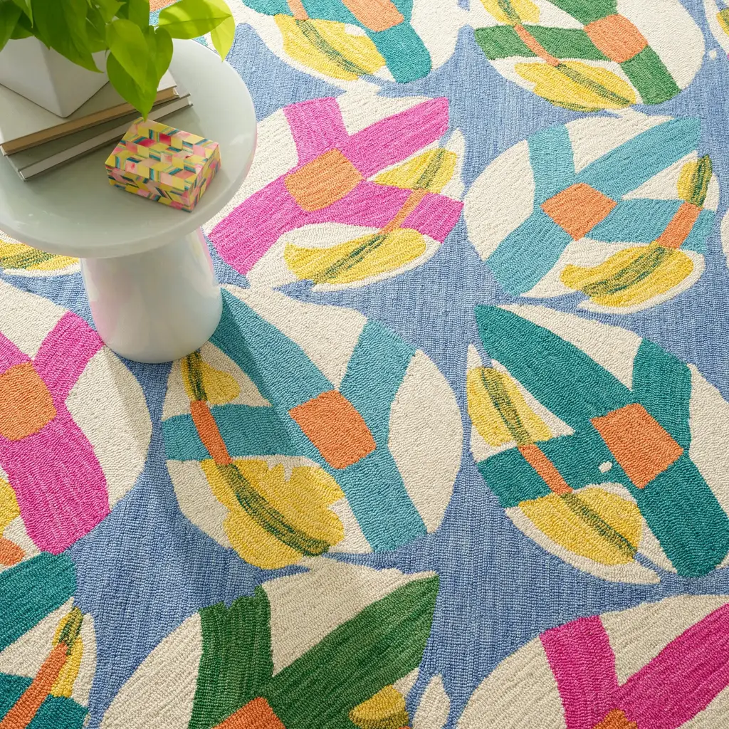 Kit Kemp's signature aesthetic and distinctive sense of color shines through in each iteration of this kinetic, retro inspired design. Evoking the shifting patterns and reflective surface of a lily covered water feature, each rug tells the story of refracted light through the seasons. Artfully rendered in micro hooked wool, for distinctive definition of form and color, as well as long lasting beauty and durability. One of the modern creations from the design collaboration between Annie and Kit Kemp, co-owner and Creative Director for Firmdale Hotels, united by their passion for colorful and carefree design, redefining contemporary Arts and Crafts for everyday life.