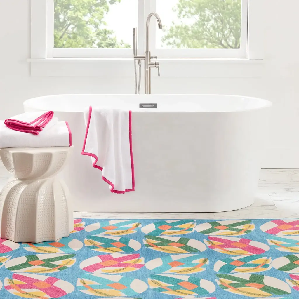 Part of our best-in-class collection of design-focused, machine-washable rugs. The machine-washable version of one of our most popular Kit Kemp rugs, this retro-chic, nature-inspired pattern will enliven any space in need of easy-to-clean convenience. It's perfect for homes with pets and ideal for high-traffic areas like kitchens, mudrooms, and entryways. It lies flat and remains soft underfoot, with no pilling or shedding, even after multiple washes. An anti-slip backing ensures the rug stays firmly in place.