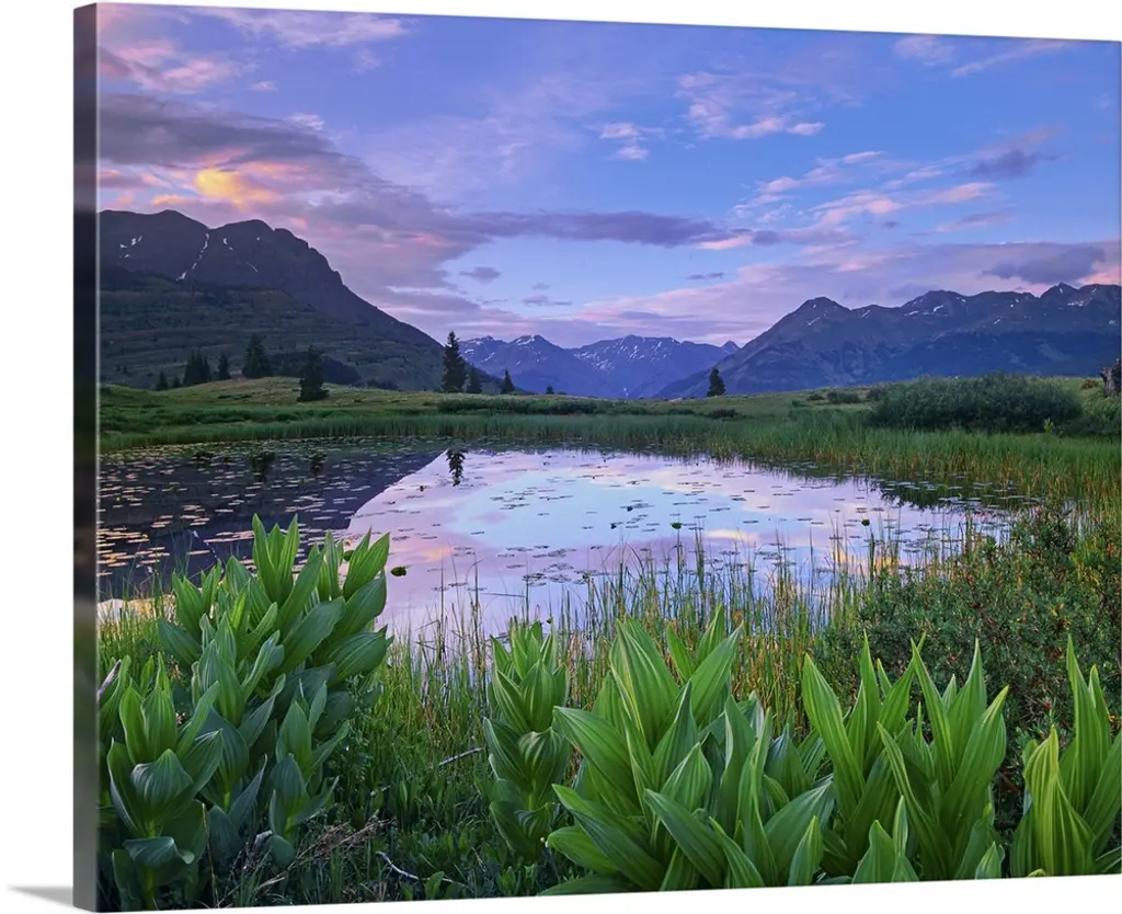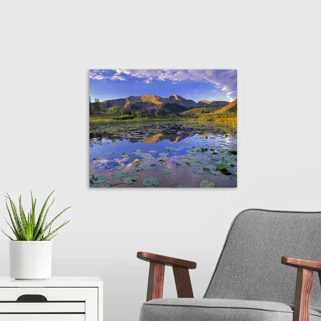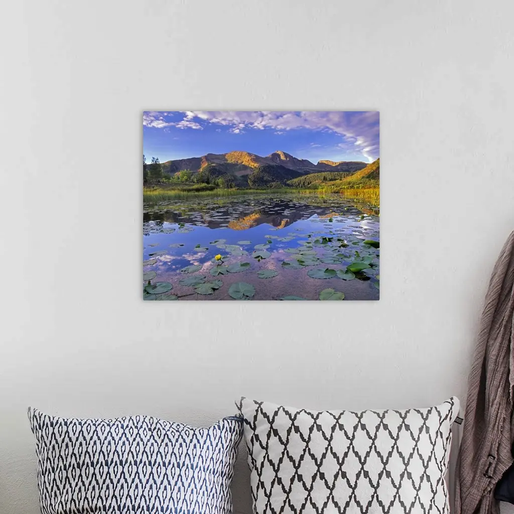Lily Pads And Reflection Of Snowdon Peak In Pond, West Needle Mountains, Colorado