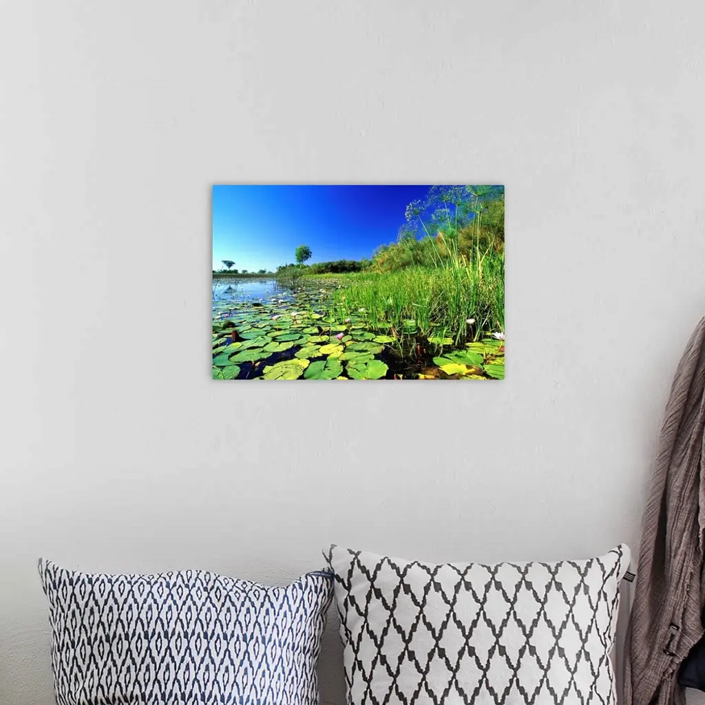 Lily Pads In A River, Okavango Delta wall art for home and office decor. Discover canvas art prints, photos, mural, big canvas art and framed wall art in GreatBigCanvas.com's varied collections.