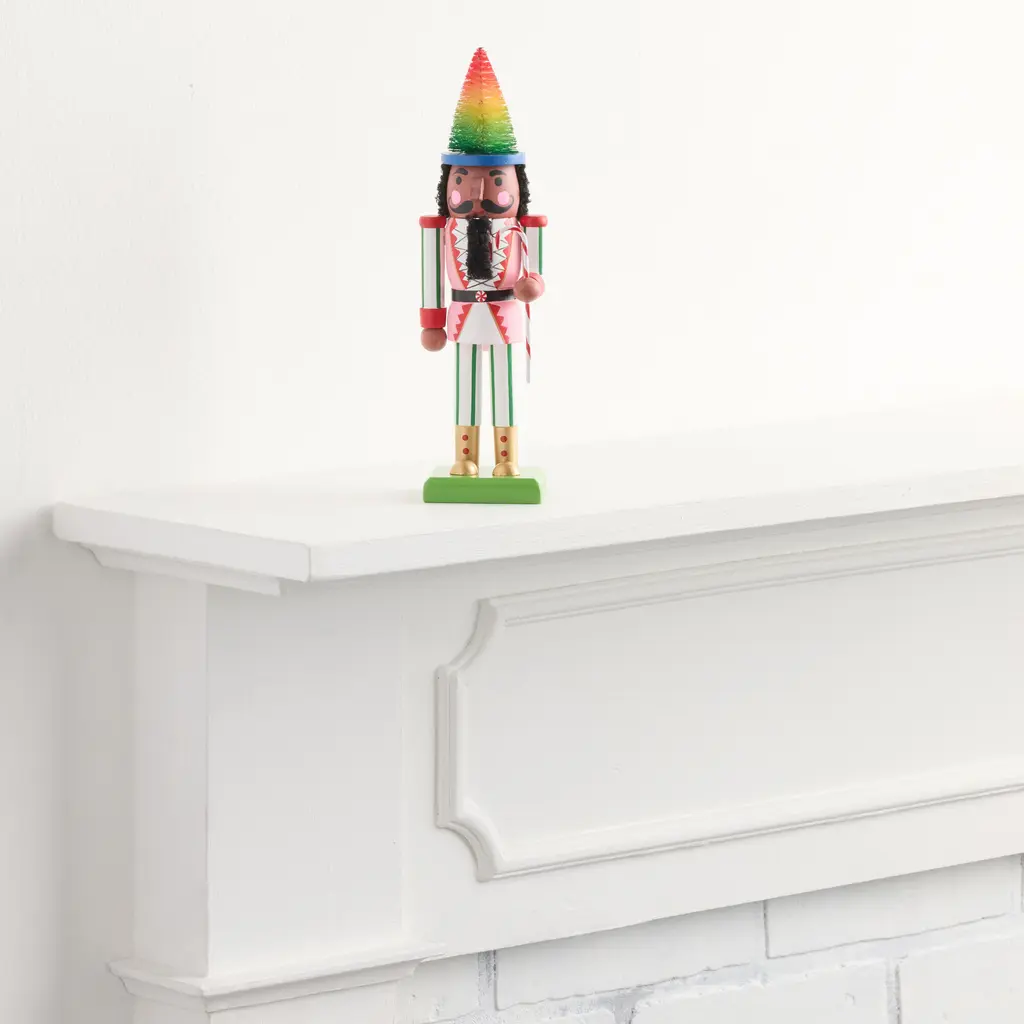 Classic Christmas style and contemporary flair combine in our brightly uniformed nutcracker, crafted of solid wood with a deep brown finish. This stylish soldier dons a vibrant lime-green coat, jeweled red hat and boots, and a blue-handled gold sword. The destination for heirloom-quality nutcrackers, World Market offers creative, exclusive new designs every holiday season.