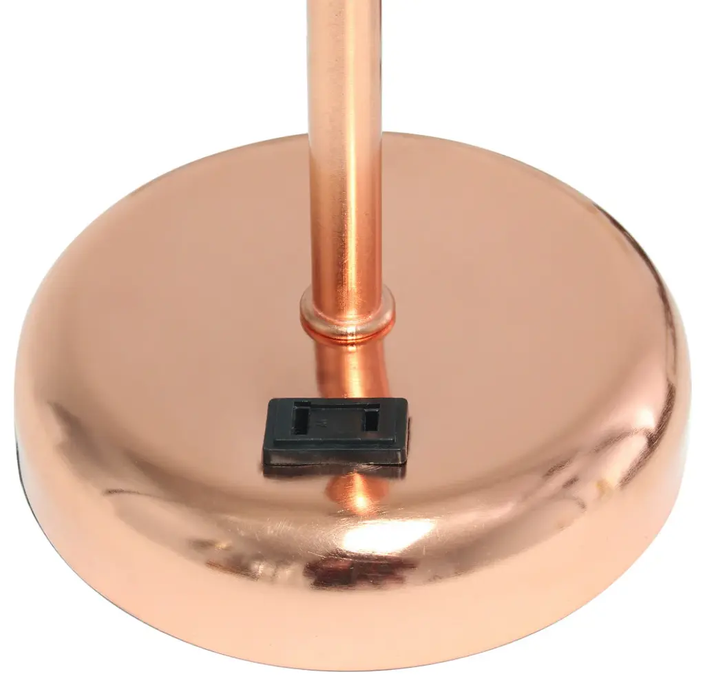 Limelights Rose Gold Stick Lamp With Charging Outlet And Fabric Shade