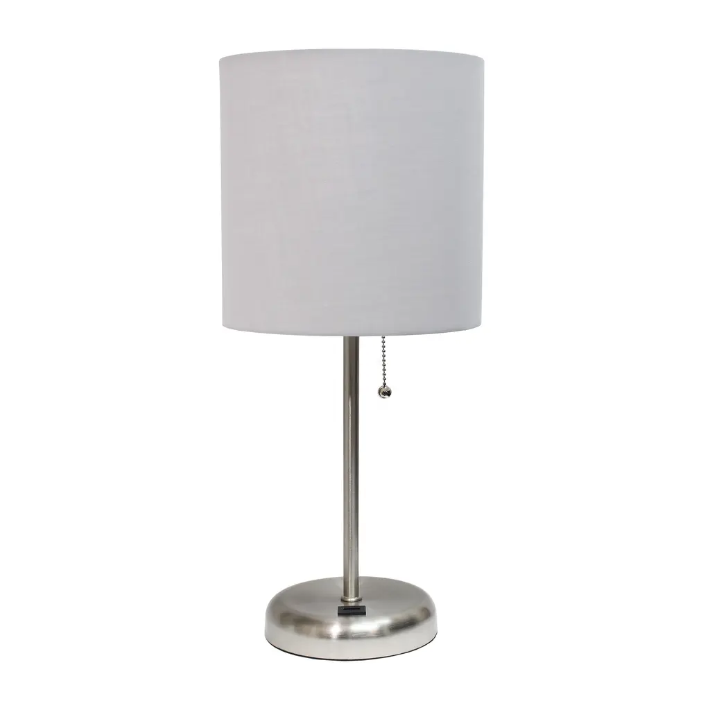Limelights Stick Lamp With Usb Charging Port And Fabric Shade - Brushed Steel Base/blue Shade