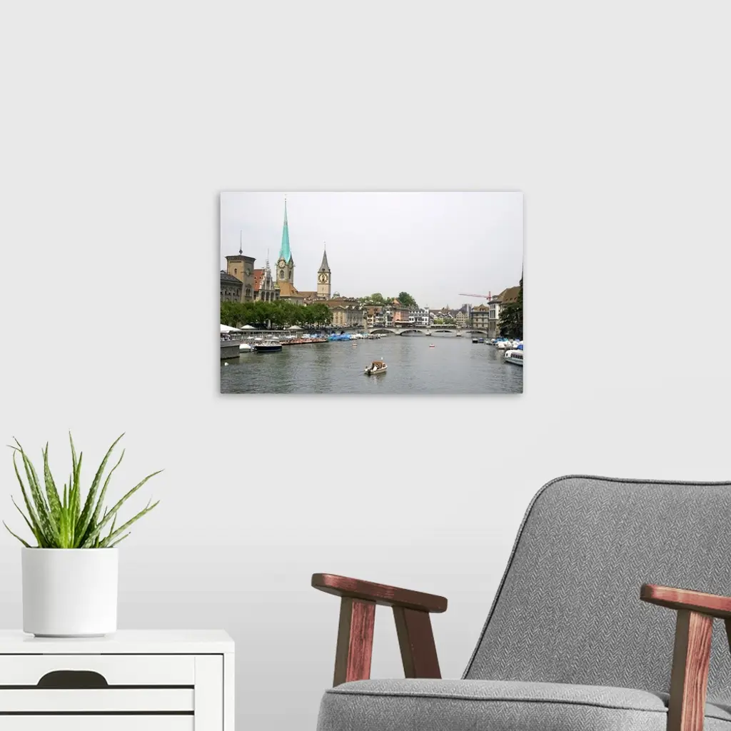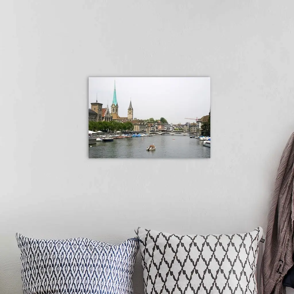 Limmat River in Zurich, Switzerland...switzerland, swiss, europe, european, travel, tourism, swiss alps, alps, alpine, zurich, river, boats, limmat, limmat river