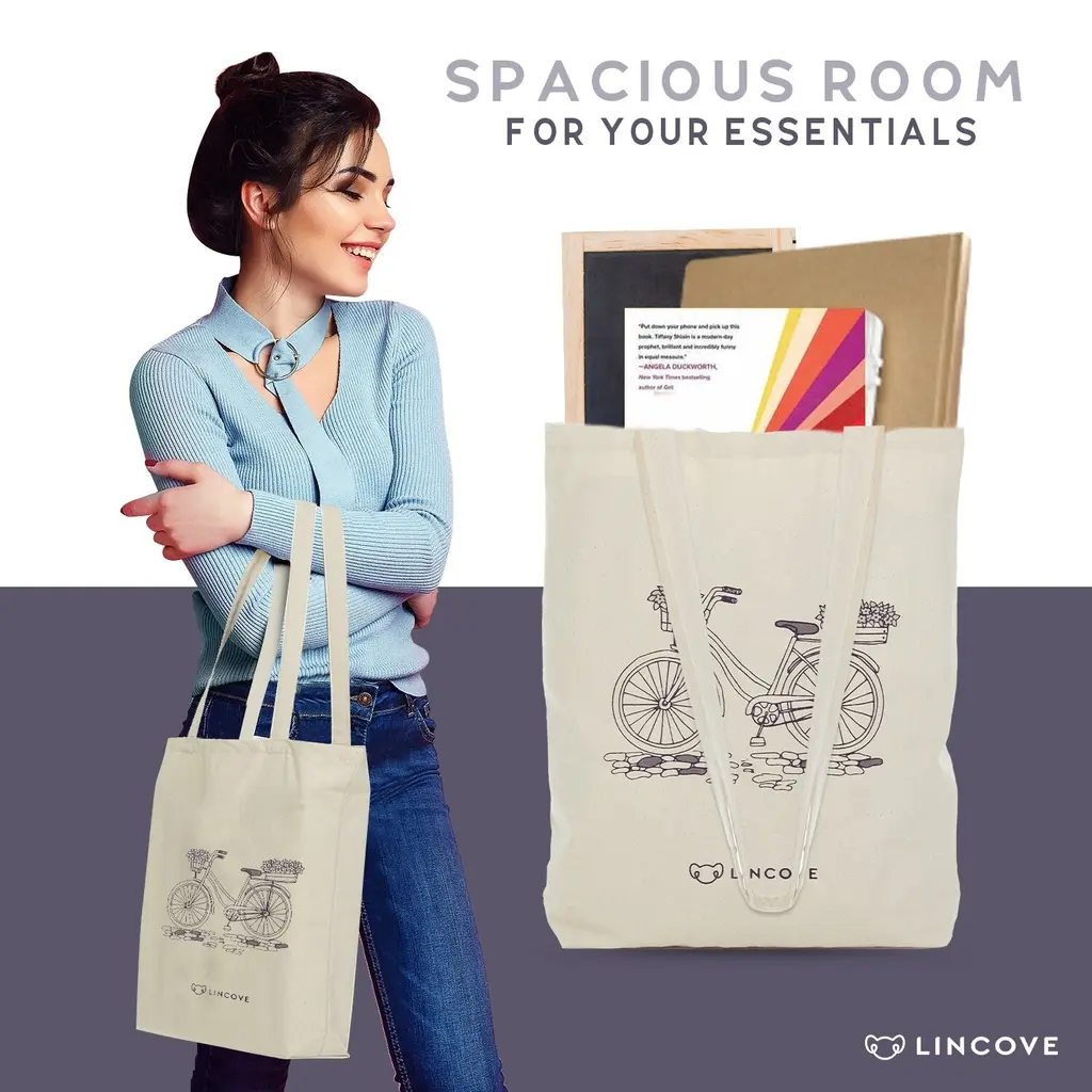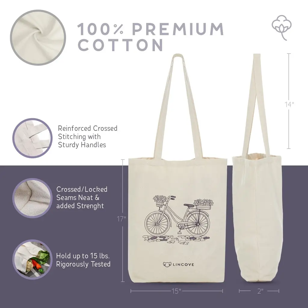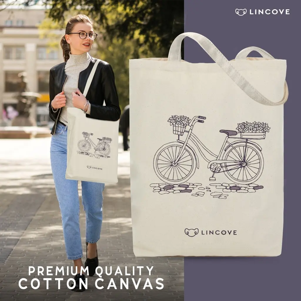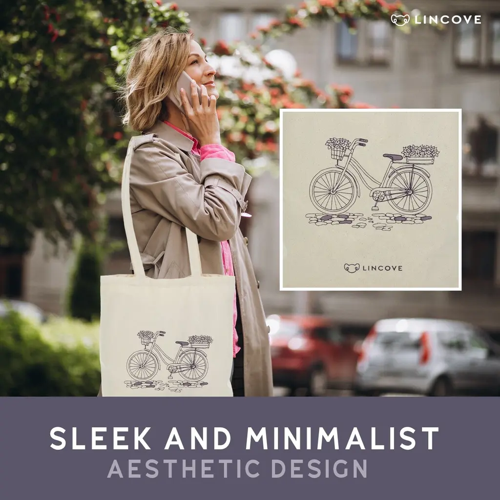 Lincove Stylish Canvas Tote Bag - Reusable Bag - Perfect Daily Use & Travel - Bicycle