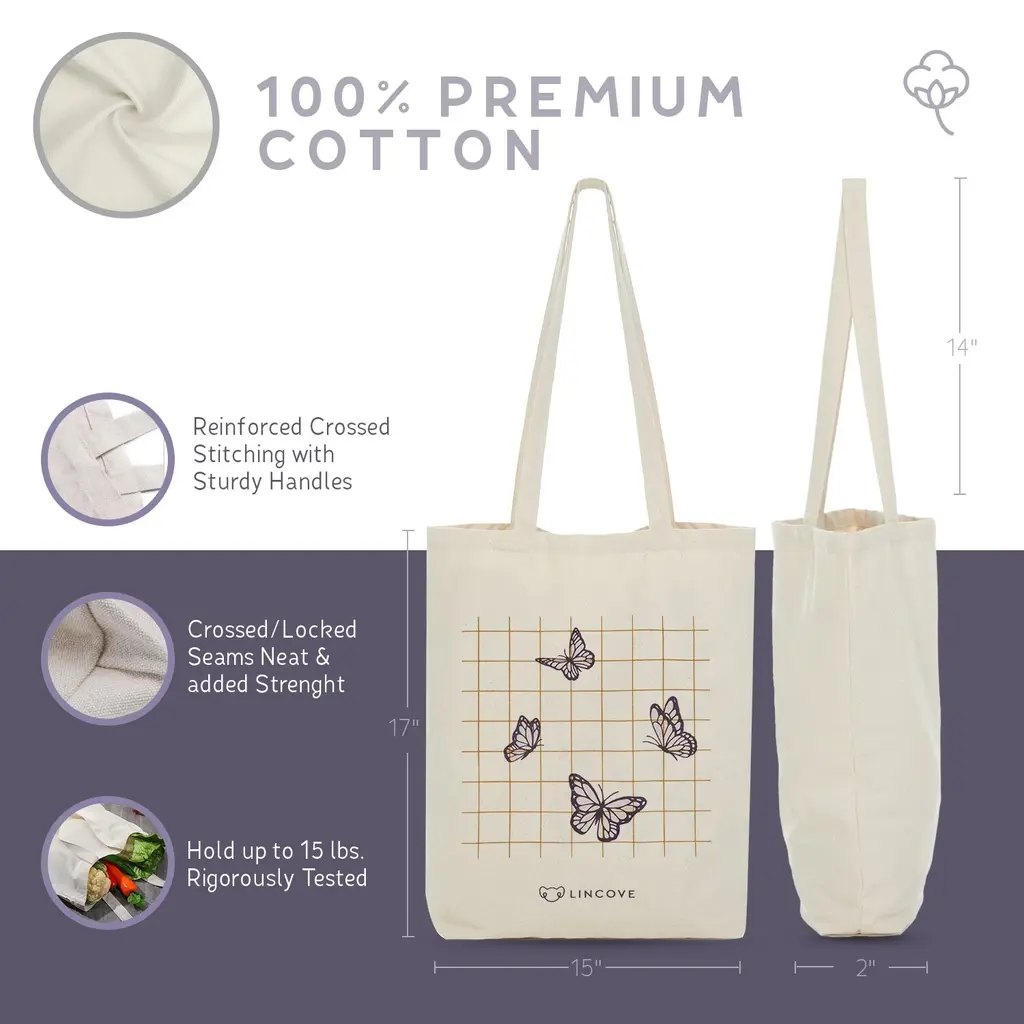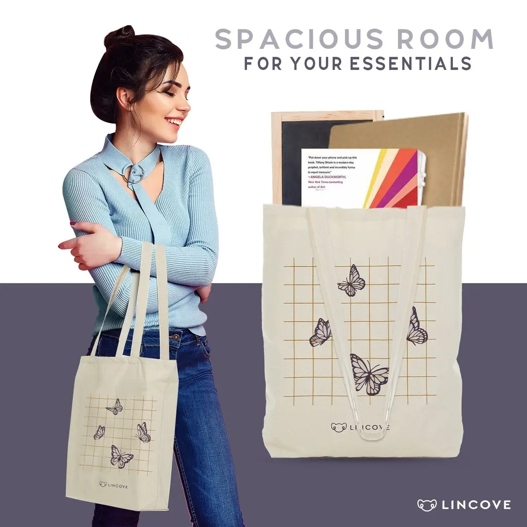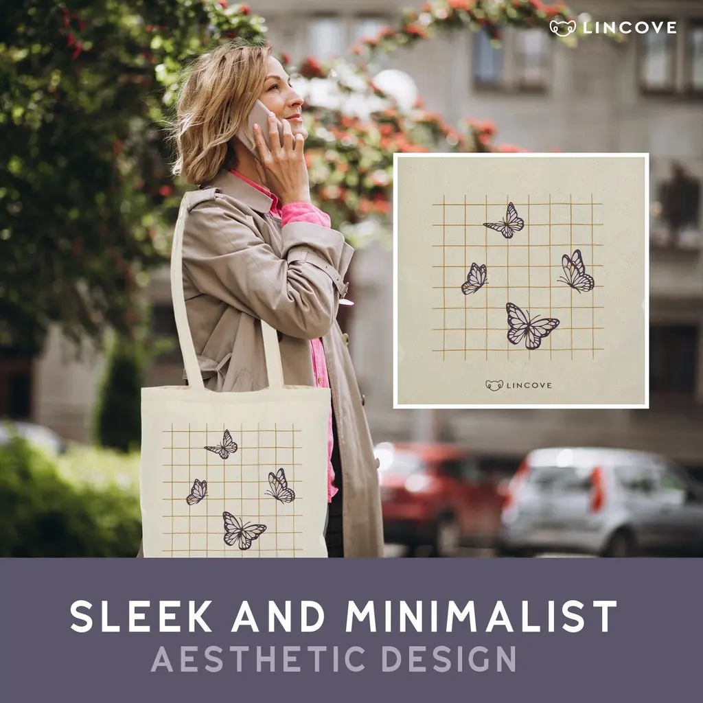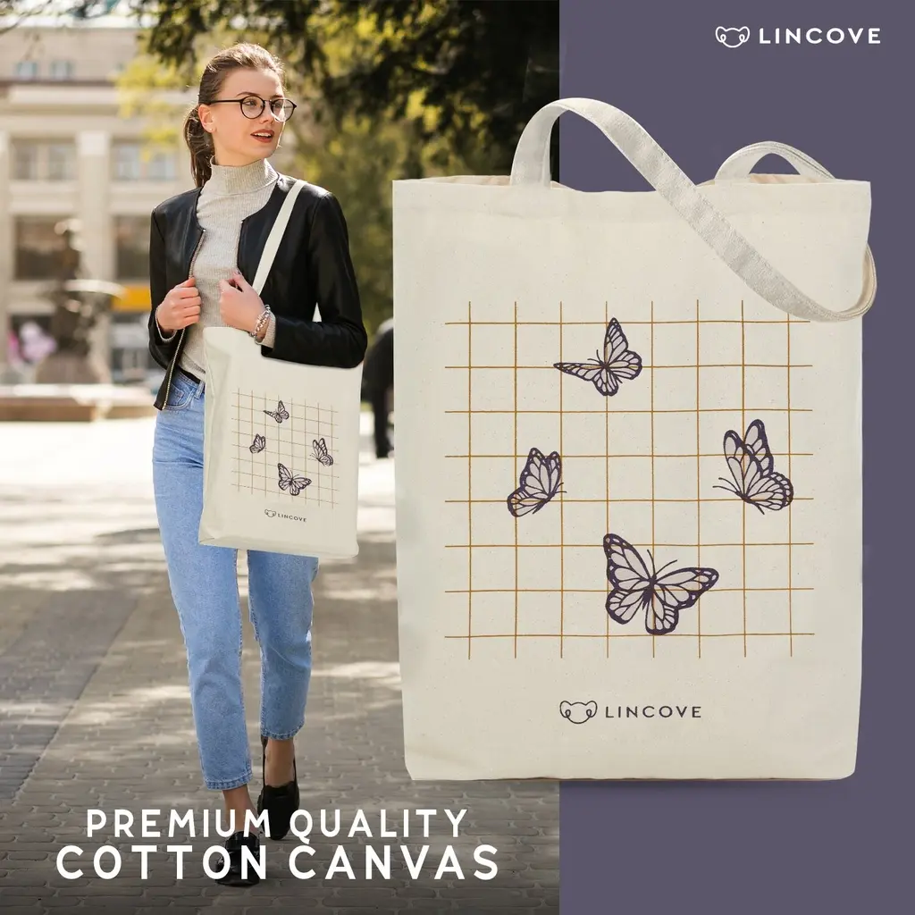 Lincove Stylish Canvas Tote Bag - Reusable Bag - Perfect Daily Use & Travel - Butterfly