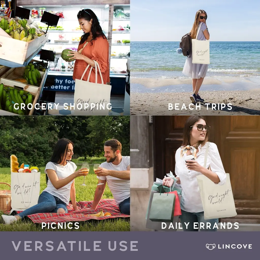 Lincove Stylish Canvas Tote Bag - Reusable Bag - Perfect Daily Use & Travel - Cosmic
