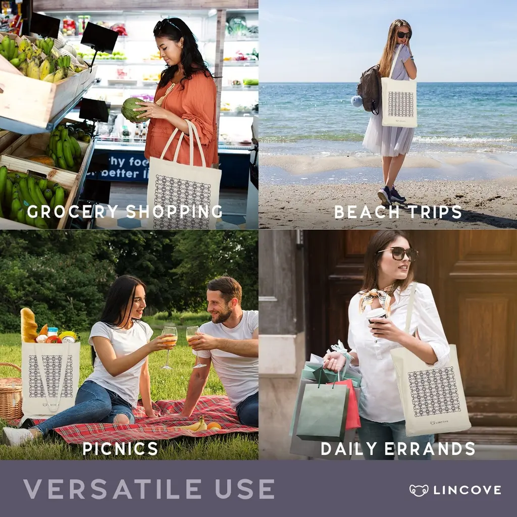 Lincove Stylish Canvas Tote Bag - Reusable Bag - Perfect Daily Use & Travel - Koala