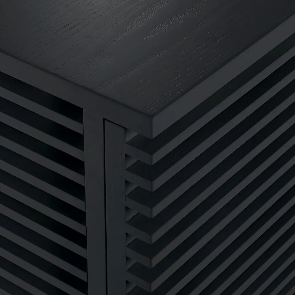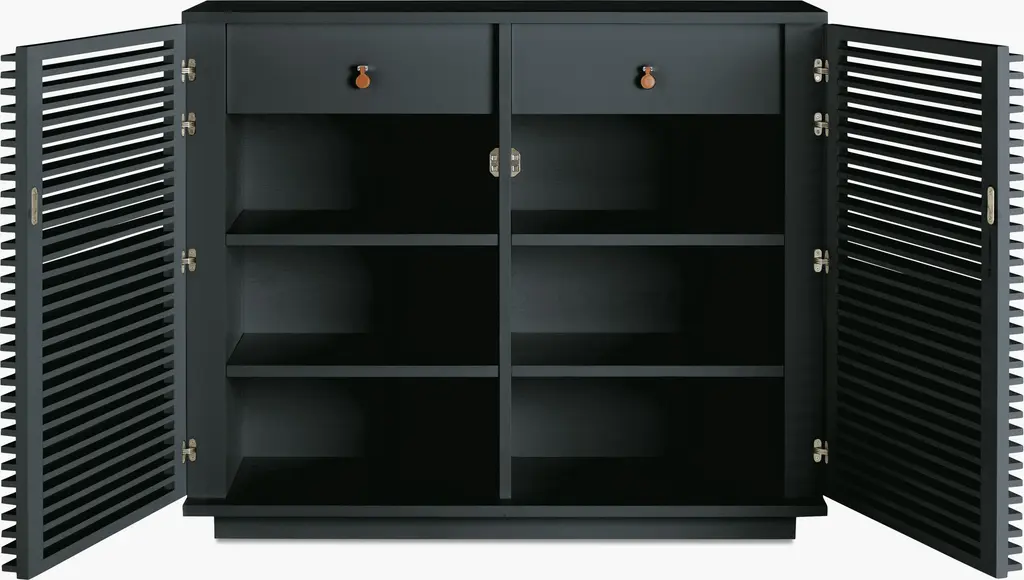 The Line Collection (2012) is distinguished by horizontal lines that lend a sense of restfulness. This louvered design also serves a purpose on applicable units, allowing remotes to control devices inside. Line brings order to electronics, barware, tableware, and even office supplies. Designer Nathan Yong creates pieces that project quiet elegance, for which he credits hectic city living. “My work is a reflection of my yearning for nature in this concrete jungle," he says. Made in Malaysia.