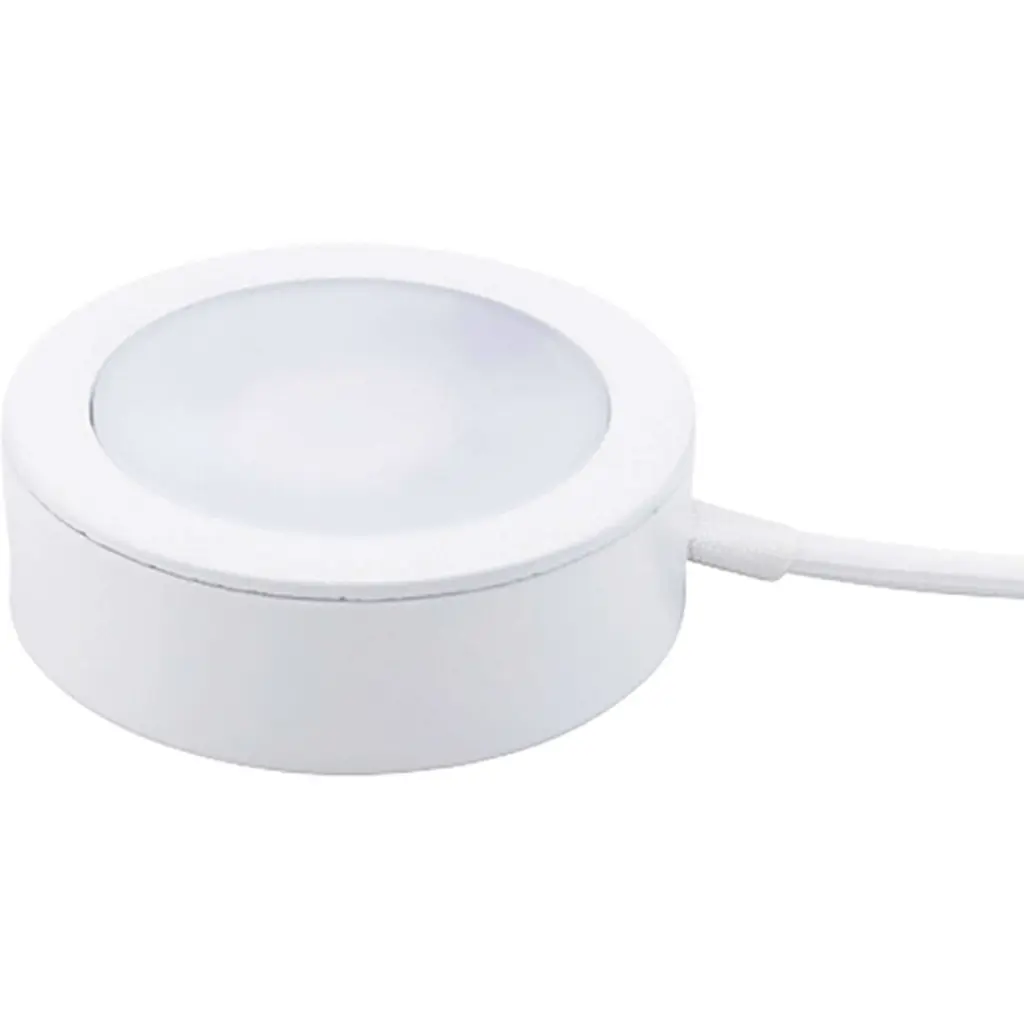 WAC line voltage puck lights feature 3-CCT selectable technology that allows you to toggle between 2700K-3000K-3500K with quality illumination for all tasks. Available in multiple finishes. Can be recessed or surface mounted and hardwired or installed with a plug and cord. Order a single puck or kits of multiple pucks to link together.
