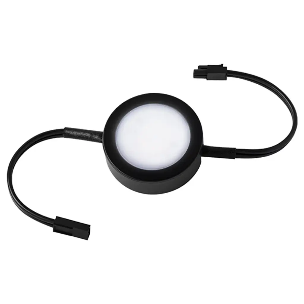 WAC line voltage puck lights feature 3-CCT selectable technology that allows you to toggle between 2700K-3000K-3500K with quality illumination for all tasks. Available in multiple finishes. Can be recessed or surface mounted and hardwired or installed with a plug and cord. Order a single puck or kits of multiple pucks to link together.