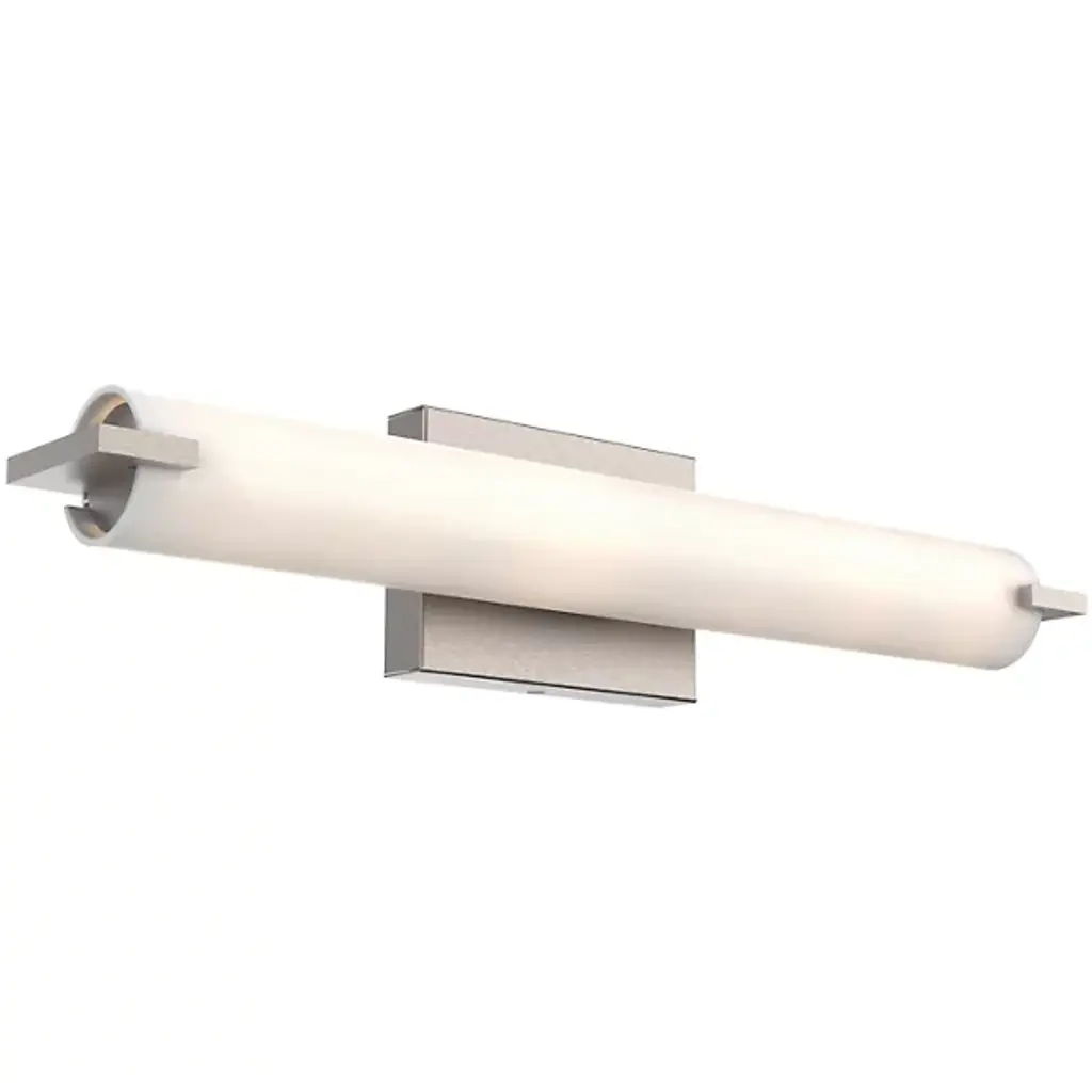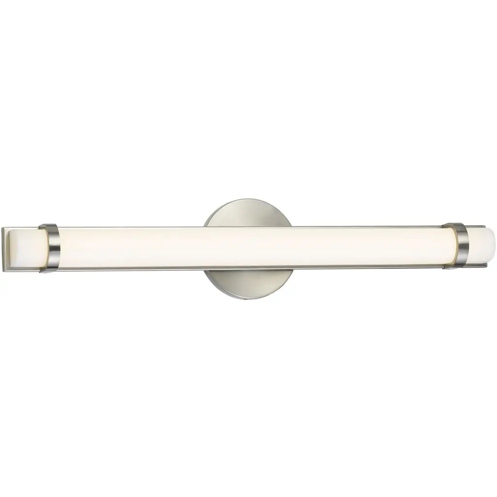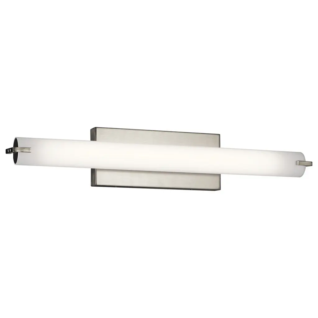 This LED, 26 inch linear wall fixture is a versatile piece. The Brushed Nickel finish and a white acrylic diffuser create a crisp look and bright, clean ambience. Horizontal or vertical mounting options add to the versatility of this fixture.ETLD listed, Hardwired. Integrated LED light source.