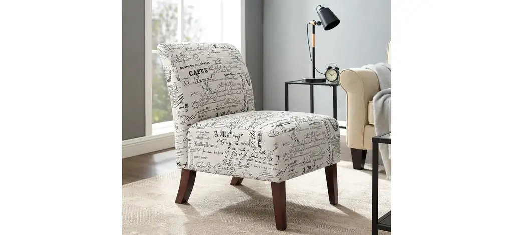 The Linen Lily Chair is a stylish seating option for any room in your home. The chair has a plush seat and back that is upholstered in a printed butterfly linen. Straight lined legs are finished in a dark espresso. A stylish way to add function and pattern to your space.