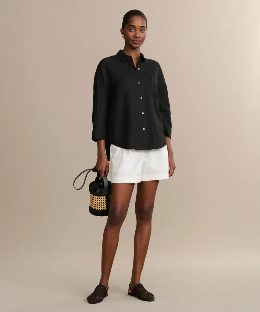 Linen Logan Shirt Black Relaxed and light-as-air, this boxy-fit button-up is our answer to effortless style in any season. Complete your perfect everyday set by pairing with the Linen Logan Pant.