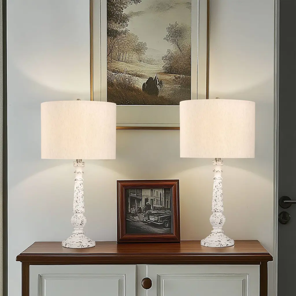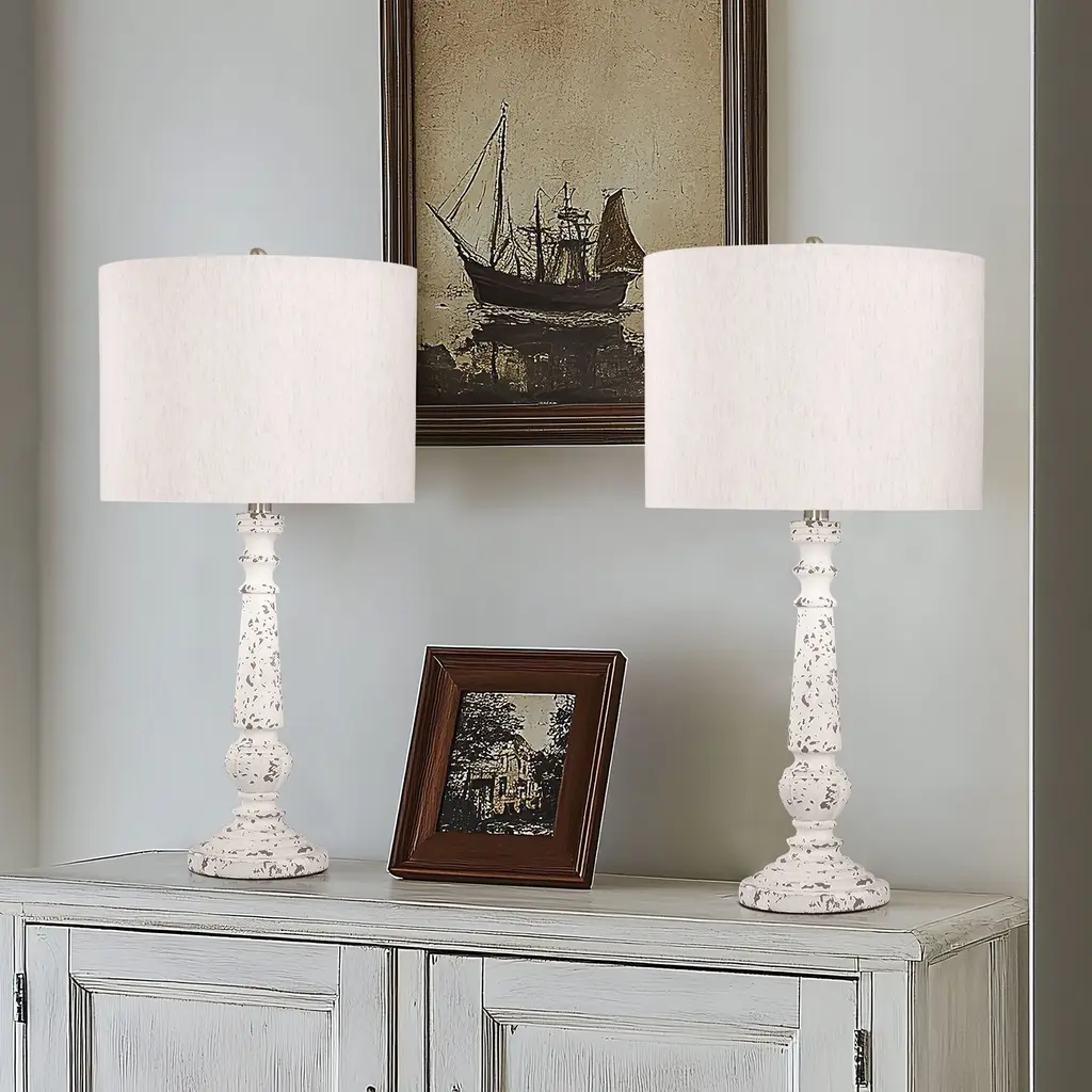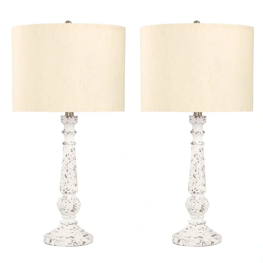 Linen Shade Resin Table Lamp (Set Of 2) - White