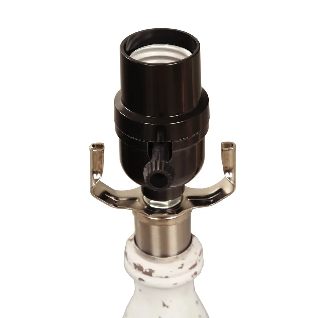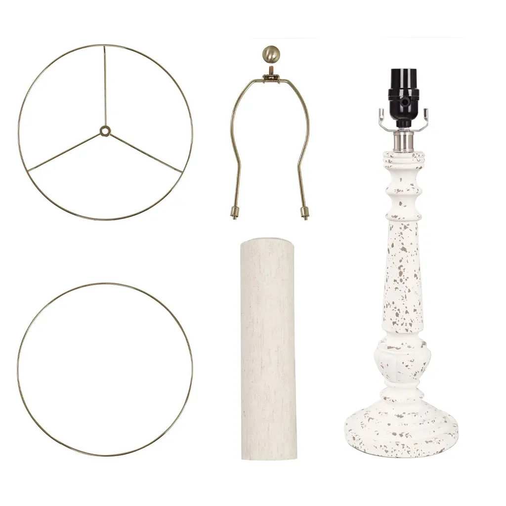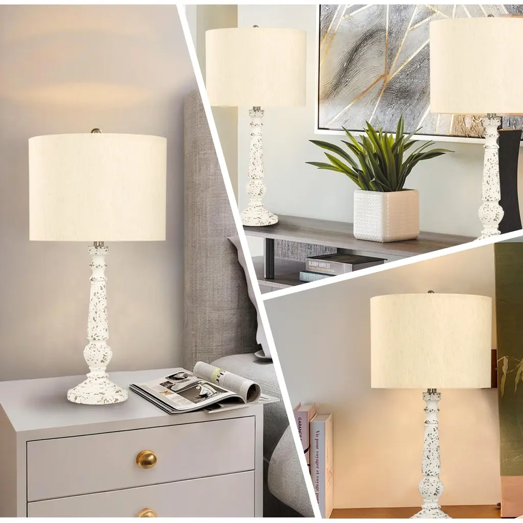 With a set of two lamps, you can place them at anywhere you want. Either both of them onto the same desk, or put them in different place to make the whole decoration accordance. Farm style simple designed outlook, with all white resin as the base, covered with different irregular gold spots as decor, the whole thing looks so natural. The white linen shade softly giving the lamp a cozy feeling. During the night, when you light up the lamp, warm light come out through the shade, not dazzling, just about right. Features: Dimensions: