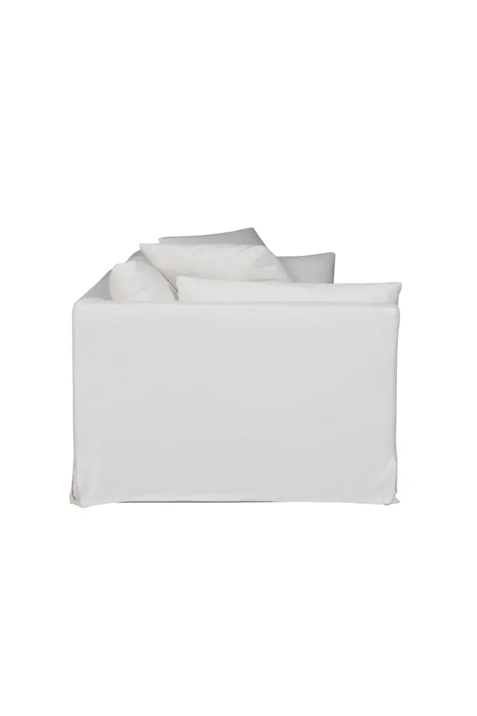 Formed of clean lines and with comfort in mind Burton is a simple, modern shaped sofa with skirted base. Made in 2 pieces that easily connect together, with the upholstery cover is then fitted over combined sections - making it much easier for access to tighter spaces. Upholstered in 100% linen for a crisp, contemporary feel with two rectangular scatter cushions (the 2 large square white cushions incuded in some of the images aren't included)