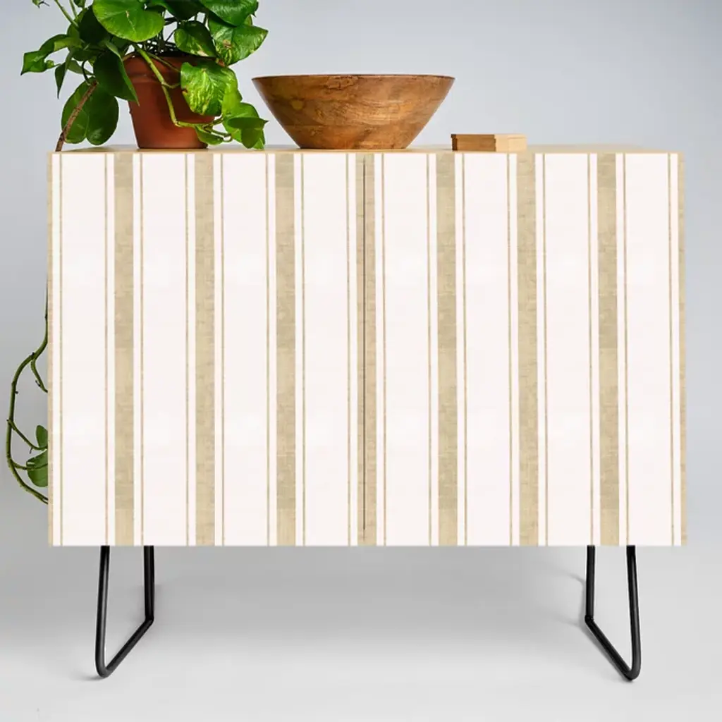 35.5" x 17.5" x 30" (H) including legsSteel legs available in gold or blackInterior shelf is adjustableWipe clean with damp clothAssembly requiredEvery order is made just for youTips for Assembling Your CredenzaHere’s what you’ll need beforehand (not included with your purchase): a Phillips head screwdriver and a partner. A ratchet and 7/16" socket is helpful but not required since we include a wrench.Read the instructions. We include a detailed, step-by-step guide in your box. Make sure to follow the instructions so your credenza looks perfect.SHIPPING: Items are made to order and typically ship within 3-4 business days. Click here for more information about delivery options.Furniture sales are final. Click here for more information on returns.