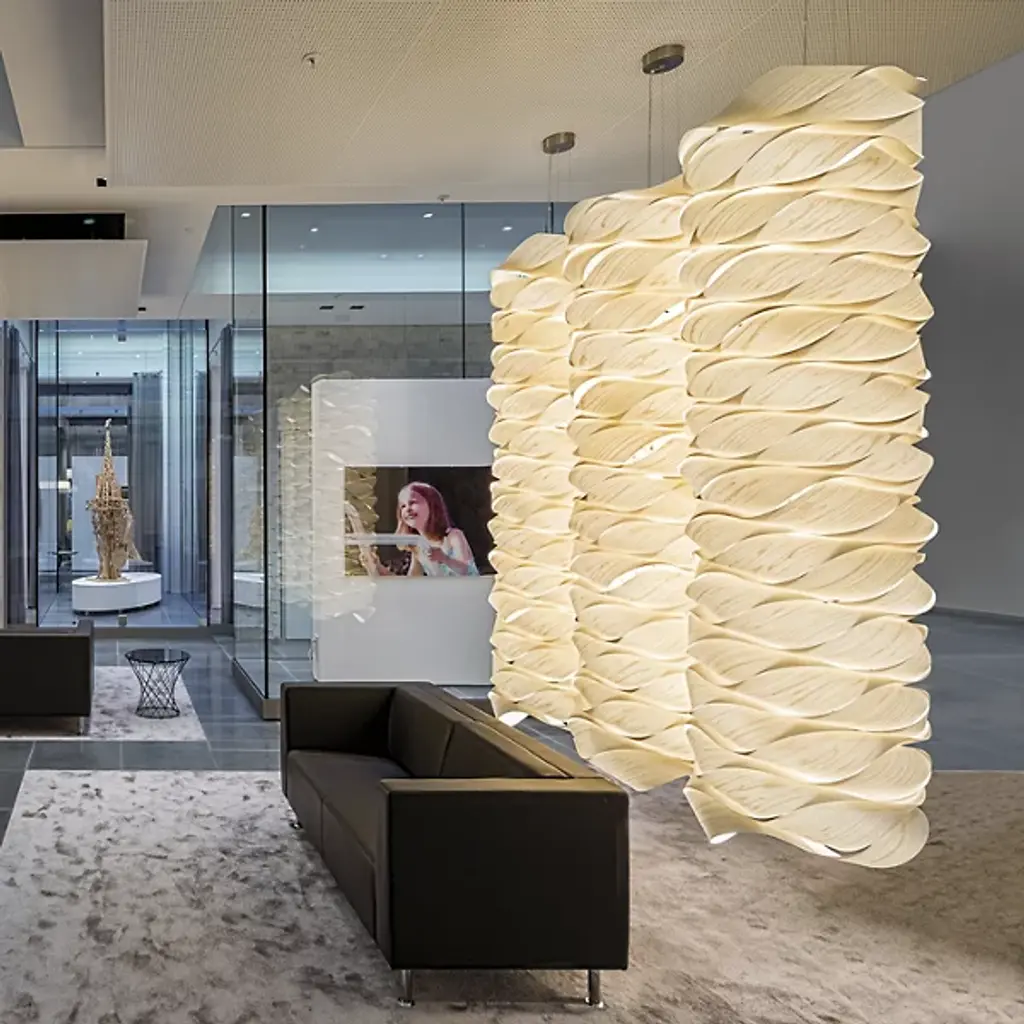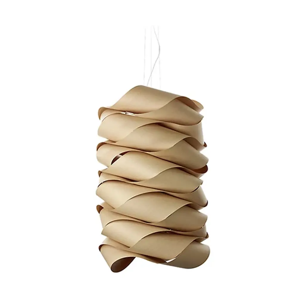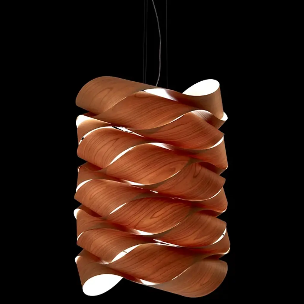 A delicate piece with innovative extravagance. The LZF Link Chain Suspension captivates a room, using a smooth, fluid structure to disperse ambient light while providing a central statement piece. An elegant Wood veneer creates an infinite, twisting structure, supported by a strong Steel frame. The beautiful Wood comes from forests certified by the FSC, and an eco-friendly treatment protects the material from scratches and markings. While the veneers hold a firm shape, their thin design keeps the grain visible as light pours through. A cylinder of illumination with incredible depth, texture and detail, this powerful statement piece enhances the lighting and style of whichever room you choose.