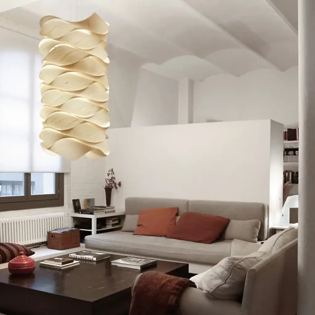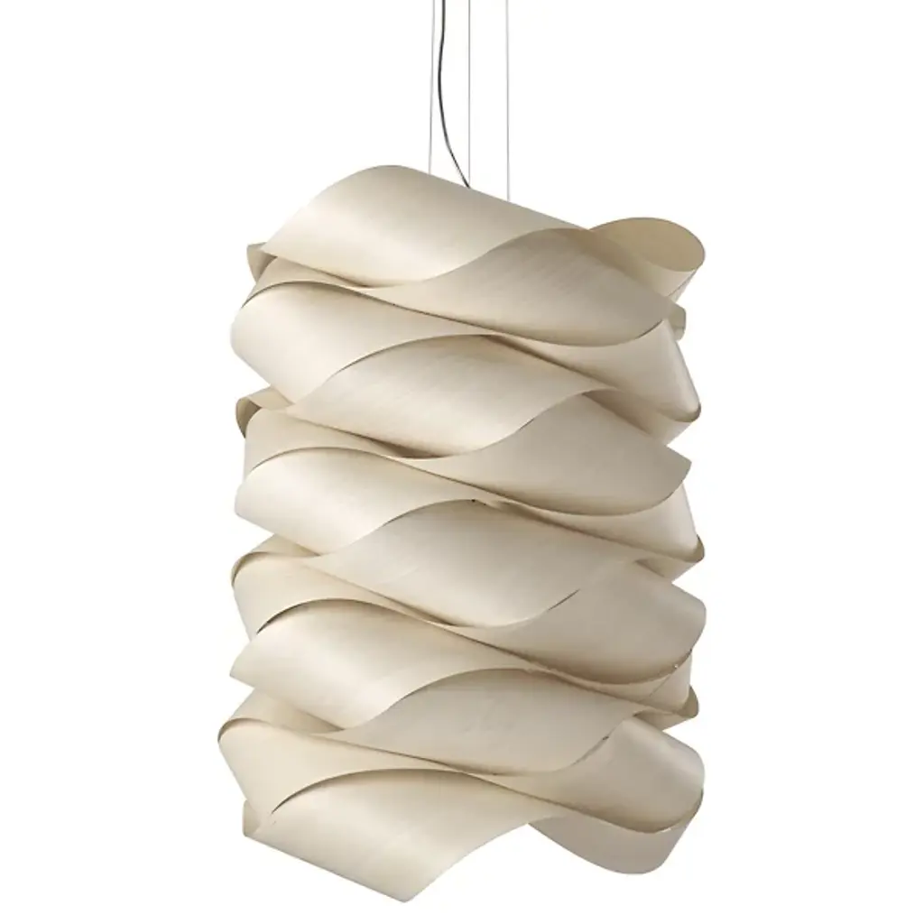 A delicate piece with innovative extravagance. The LZF Link Chain Suspension captivates a room, using a smooth, fluid structure to disperse ambient light while providing a central statement piece. An elegant Wood veneer creates an infinite, twisting structure, supported by a strong Steel frame. The beautiful Wood comes from forests certified by the FSC, and an eco-friendly treatment protects the material from scratches and markings. While the veneers hold a firm shape, their thin design keeps the grain visible as light pours through. A cylinder of illumination with incredible depth, texture and detail, this powerful statement piece enhances the lighting and style of whichever room you choose.